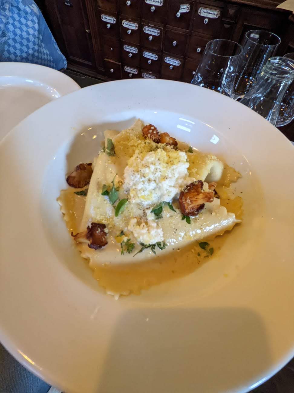 Recently visited for a date night dinner - will be back! Even though it was a lovely evening we chose to sit inside and enjoy the restored apothecary interiors. A window seat was lovely to watch the happenings on the Platz/park outside.