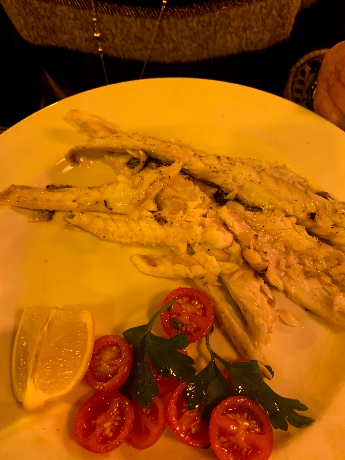 We settled for a pizza and a fishdish, which took quite long time before it came in and the waiter insisted to prepare and serve the fish by the table, which took quite some time so the fish had to go back in the oven for 2 minutes. The fish was really good though and was well served with condiments