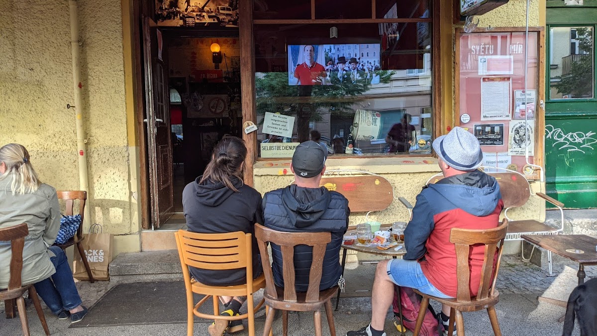 Urige Kneipe in welcher man gerne mal mit gleichgesinnten über das Weltgeschehen diskutieren oder alternativ auch mal ganz ruhig das Tschechische Pils genießen kann. Komme wieder!
