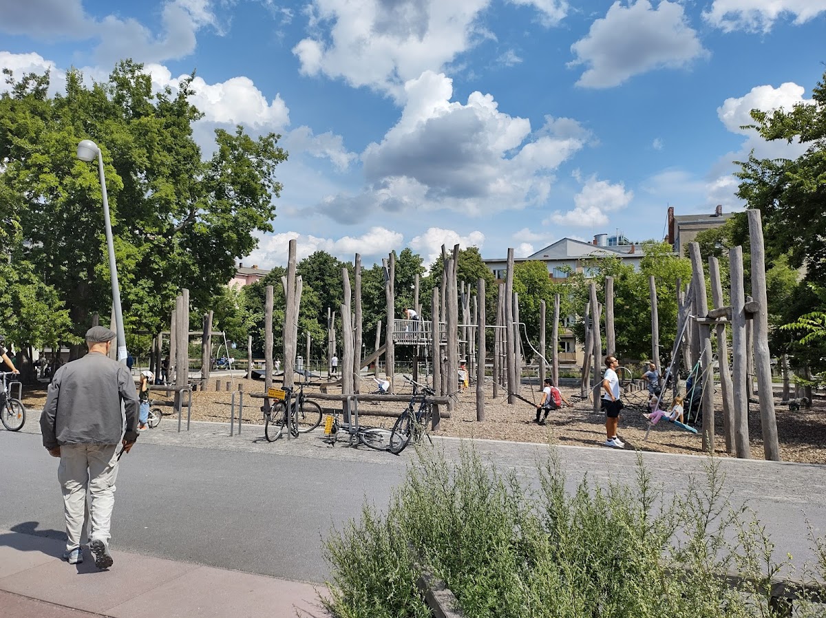 Really big park, with lots of grassy areas. We played some spikeball under a bridge to hide from the rain. But under the bridge was grassy as well, and there are also chalestenics bars and a tiny skate park, even ping pong tables. It's a great spot to chill or play some sports if you're near the middle of Berlin.