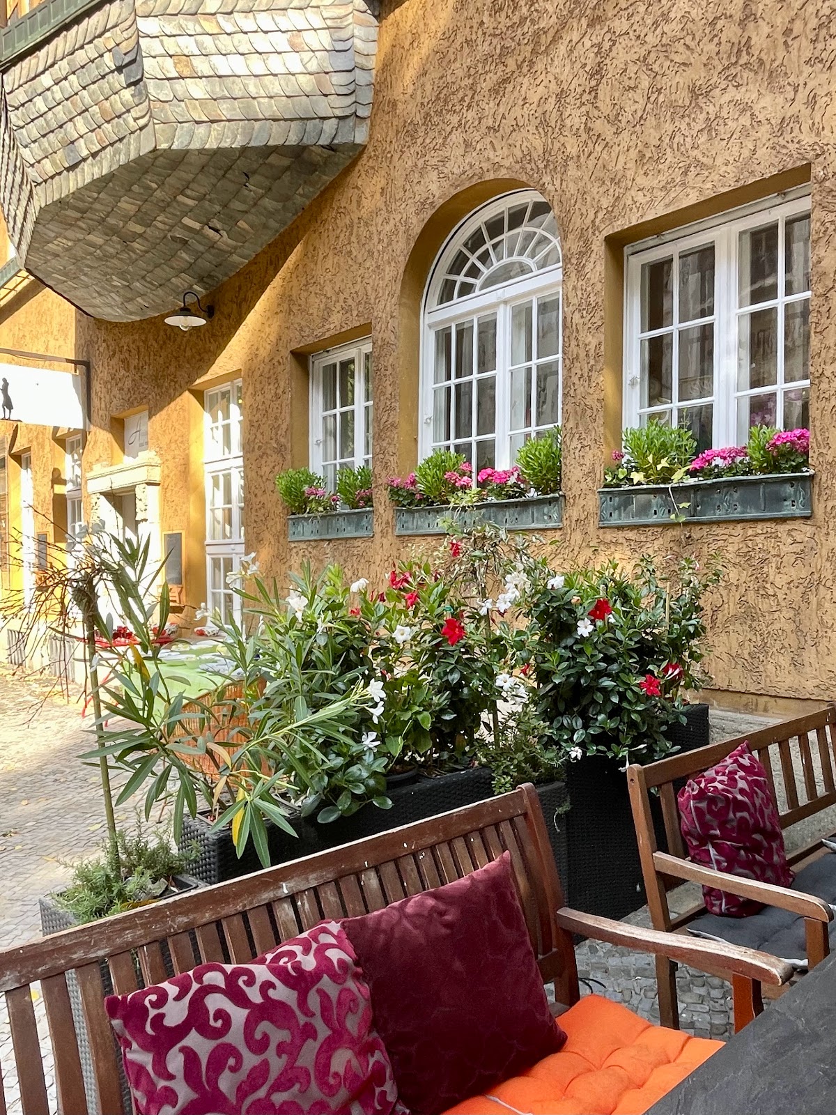 Entrance and exit are untraceable. The car entrance is actually on the Behrenstrasse. The pedestrian entrance is inside the hotel.