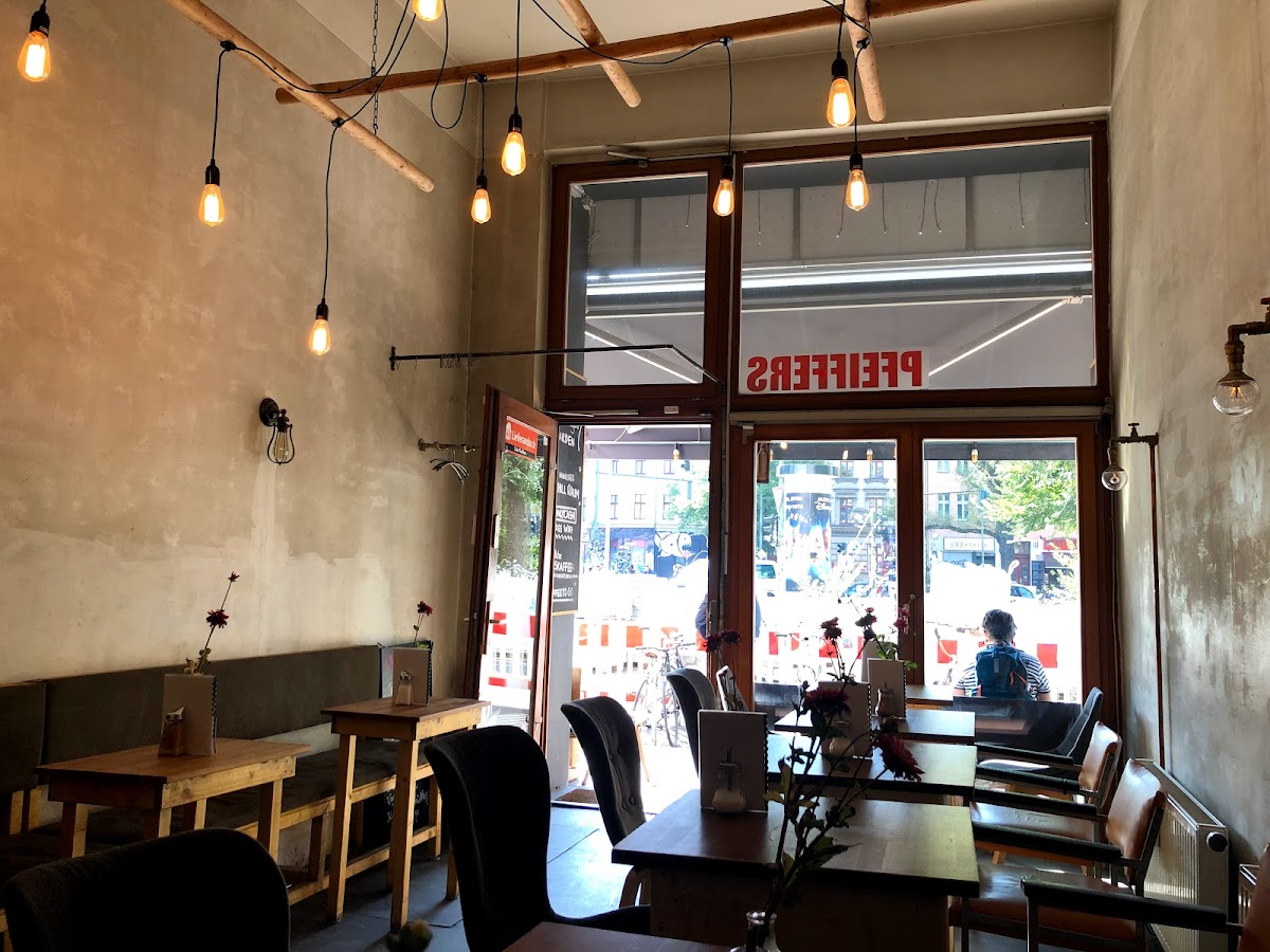Great Café, súper cosy, casual, great for talk with friends, quite. Coffee is okey, Tiramosu Torte 3/5, but still okey. Recommended!