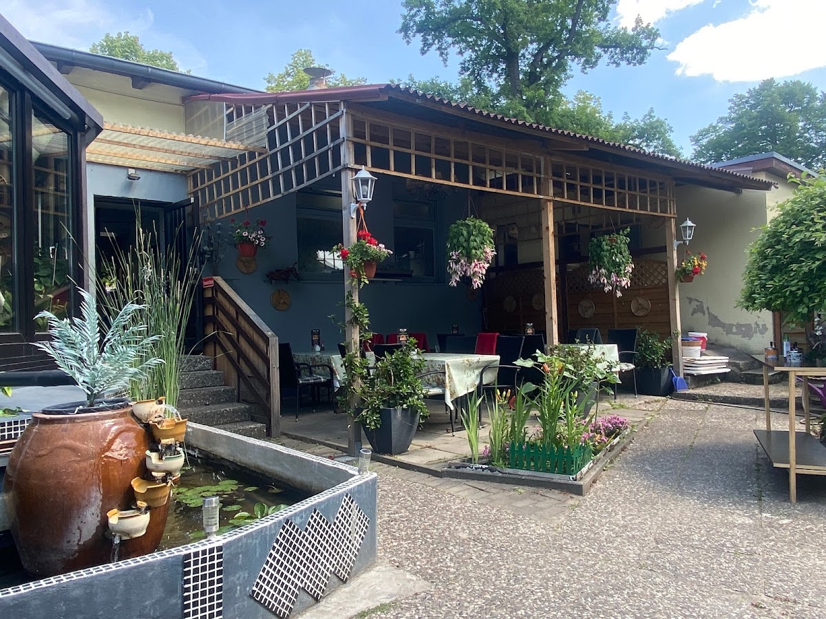 Schönes Restaurant mit Sommergarten. Das Essen beim Wasserplätschern genießen. Abseits der Straße mit Parkplätzen im rückwärtigen Grundstück. Leckere Tageskarte mit Businessangeboten zur Mittagszeit.
