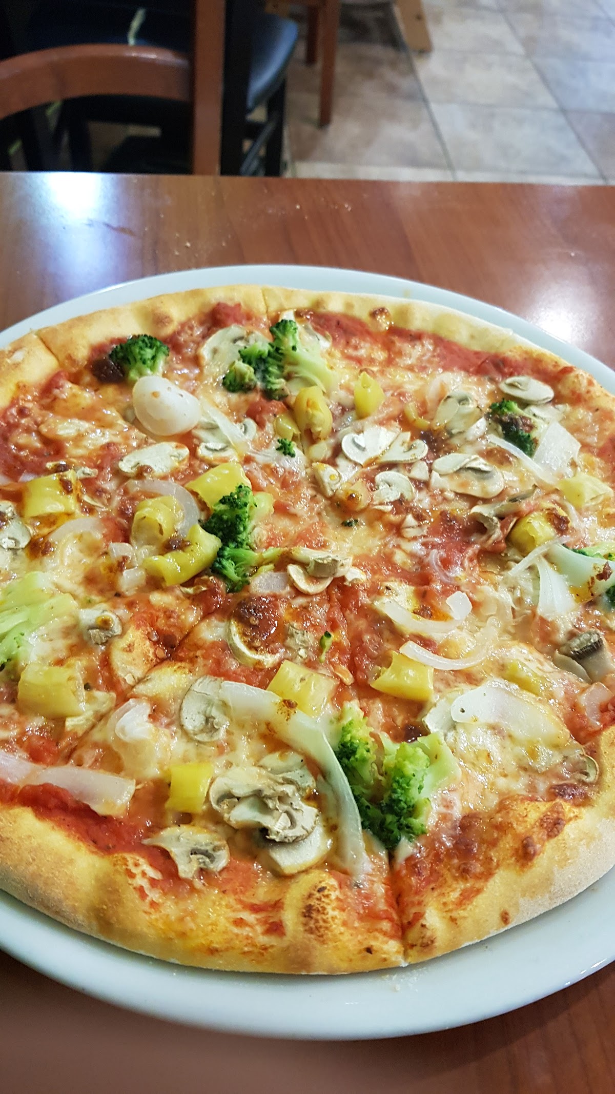 Not a fancy Italian Pizza but still tasty and cheap for a quick bite. All basic toppings available. Lots of vegetarian options. Open till late night.
