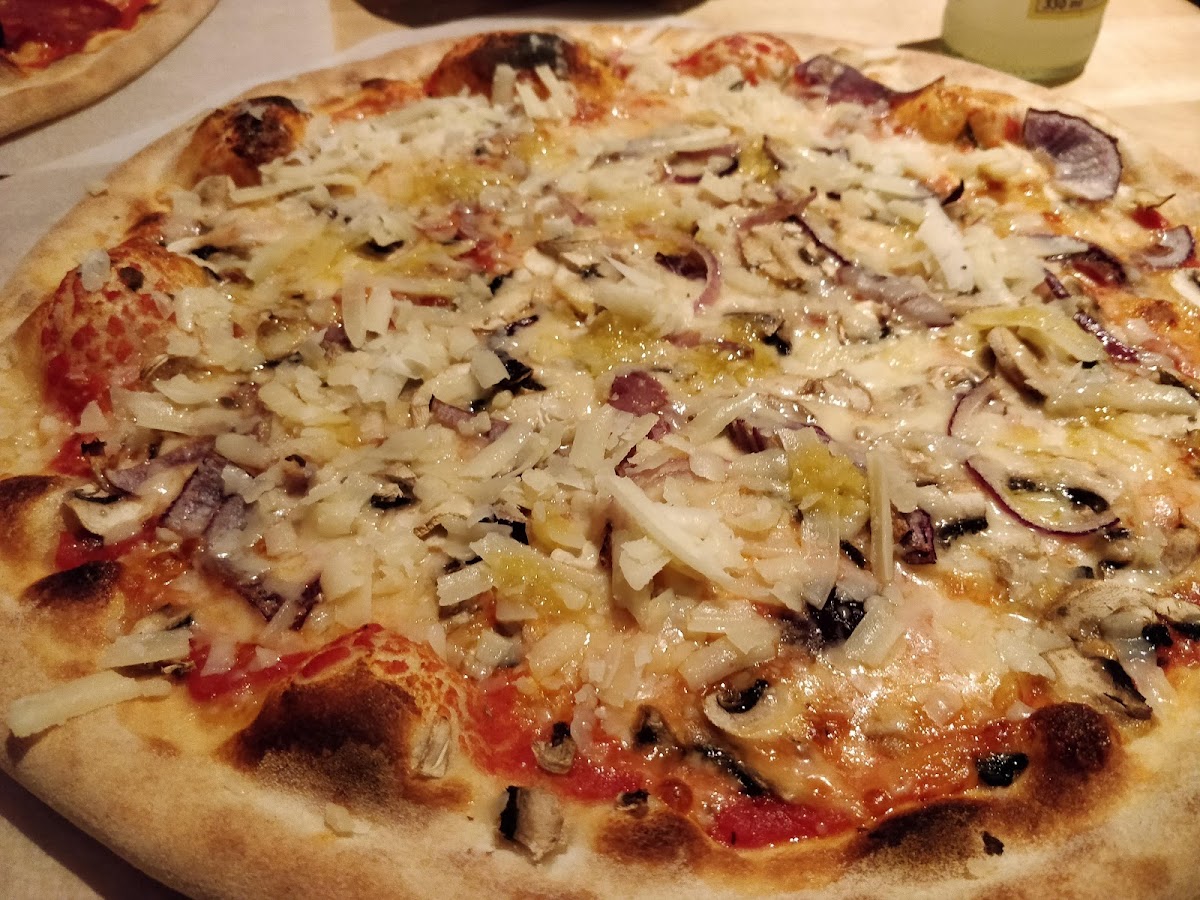 Good thin crust pizza! The toppings were flavorful and the service was quick. We stumbled upon it by accident. It was a pleasant surprise. Pretty unassuming place, very casual and down to earth. Friendly service :) I would definitely go back!