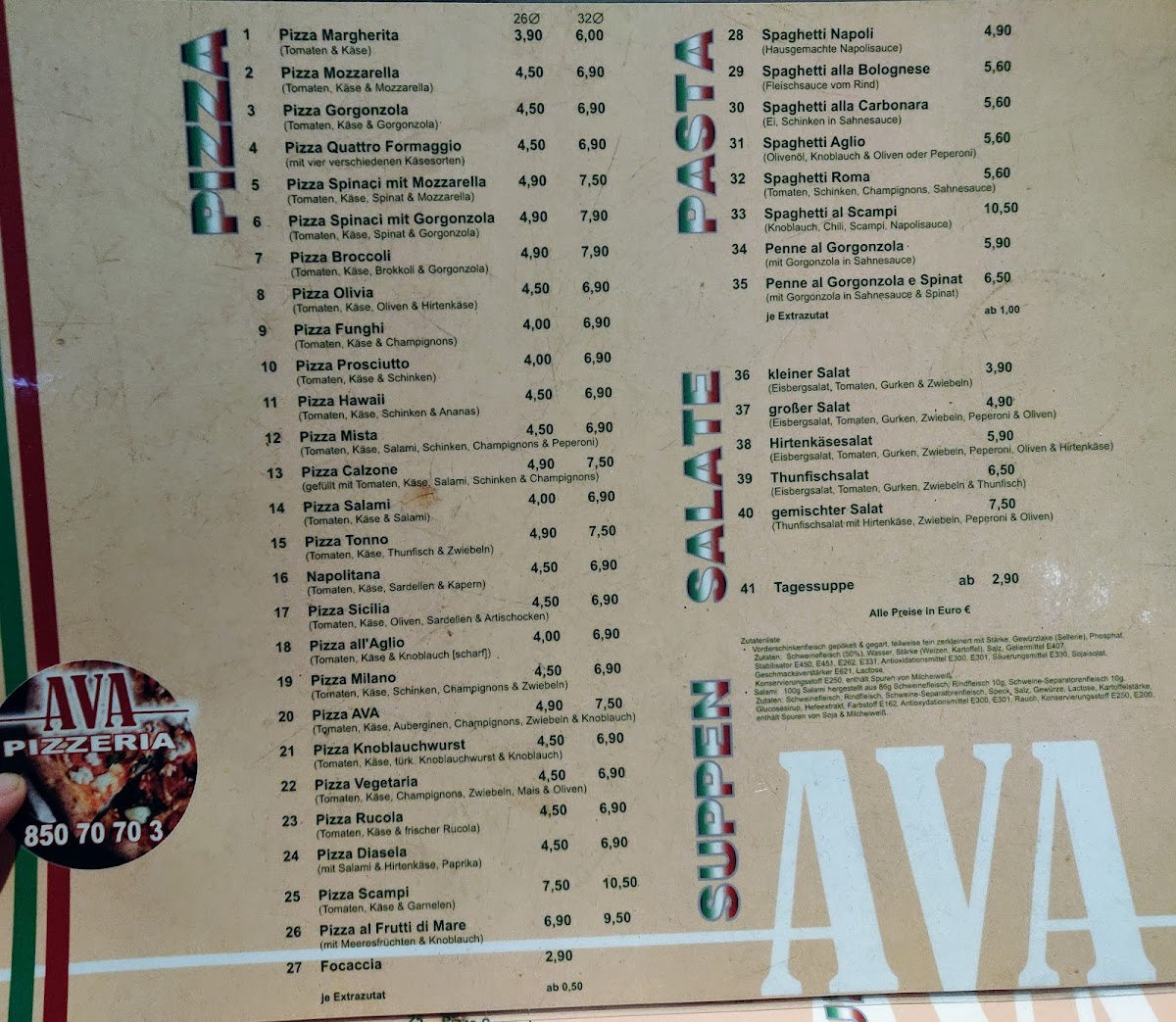 The pizzas were very tasty and for a very good price. The pasta was even better!