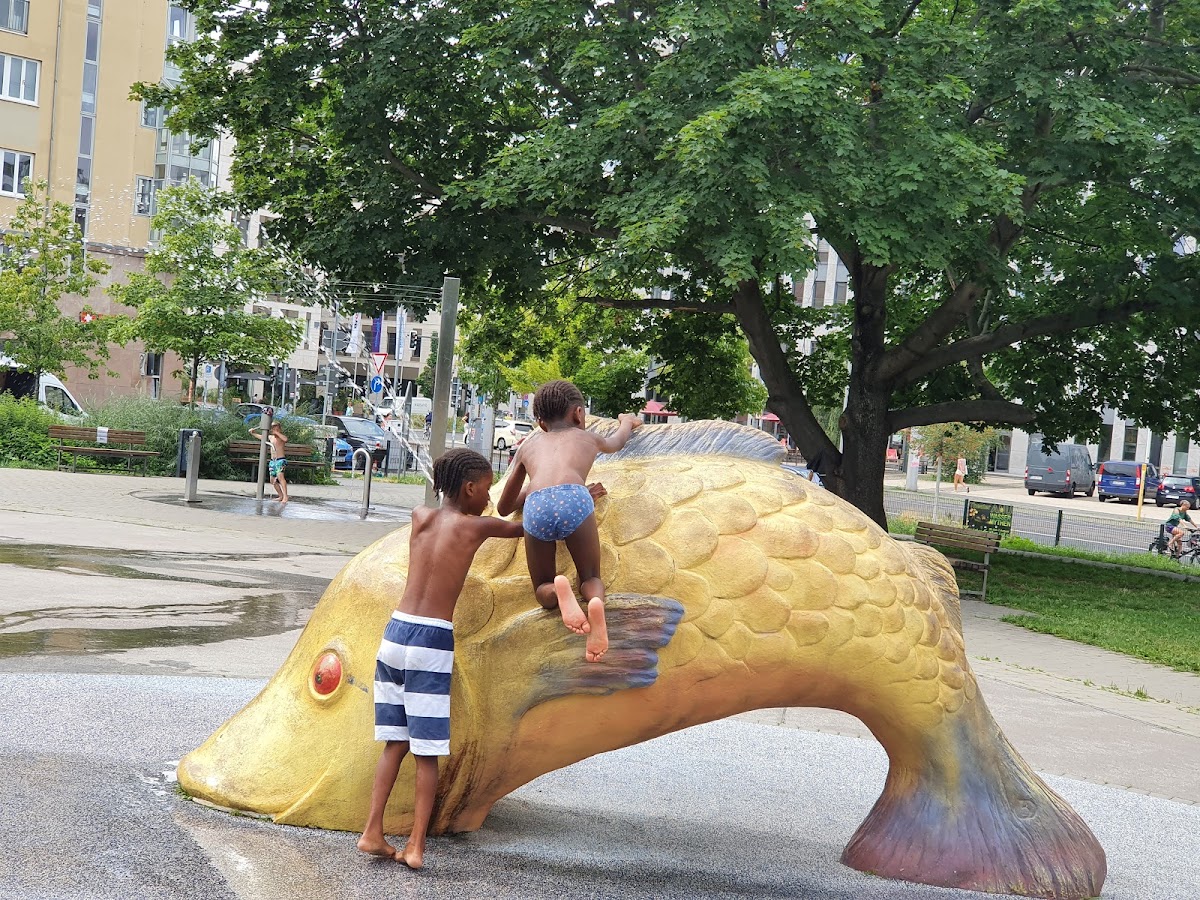 Its a nice Place to be when it is hot. The Water just goes on, when it is over 25 degree. But there is also a very nice playground. The Small showers are working all the Time. Just push the Button. ????