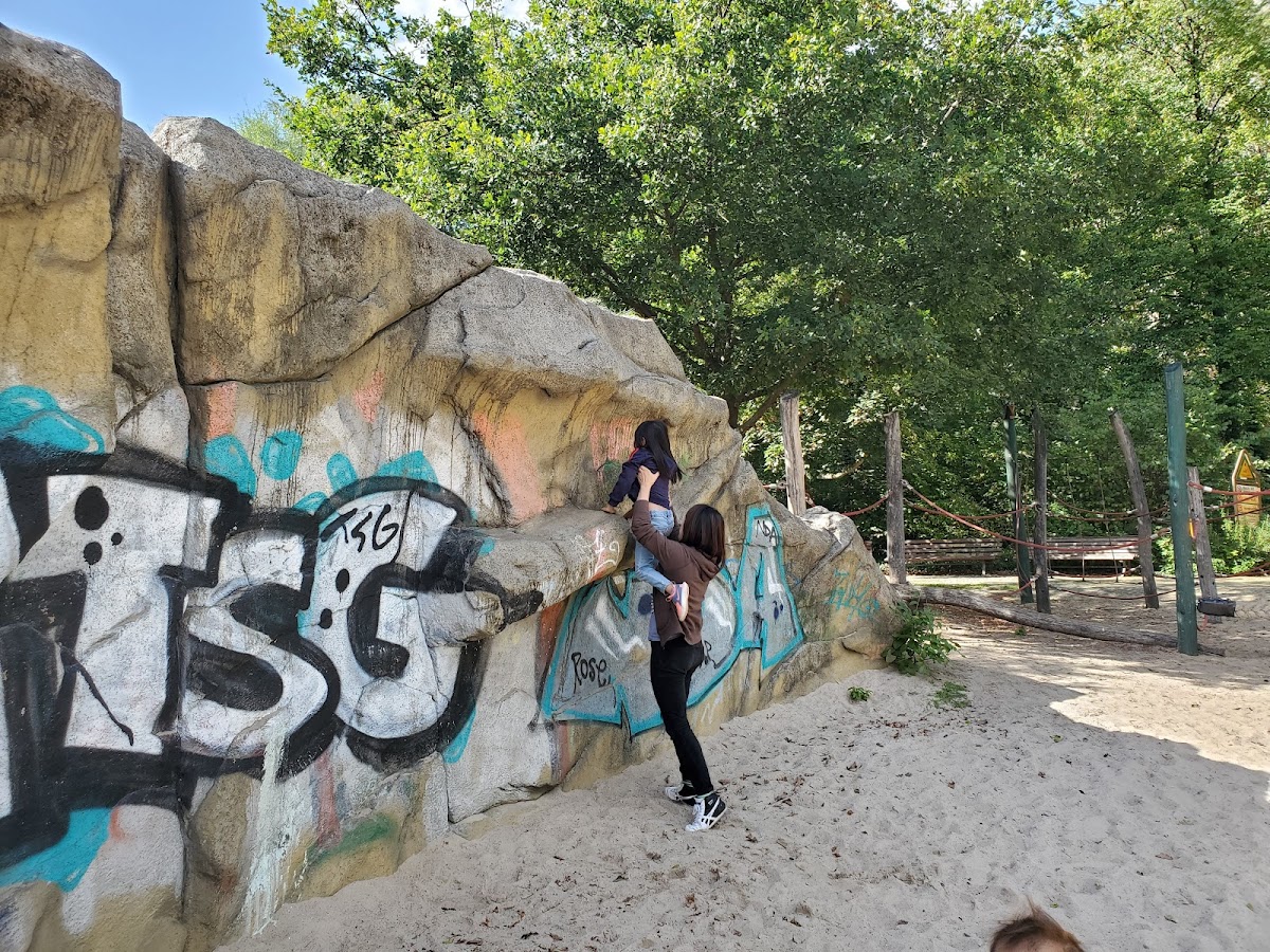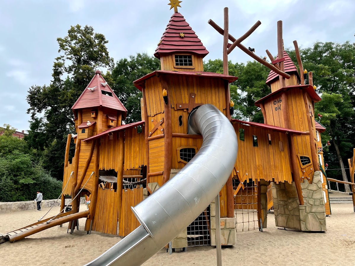 Such a cool playground with swamp theme, surrounded by one of the best parks in Berlin. The zipline is a favorite.