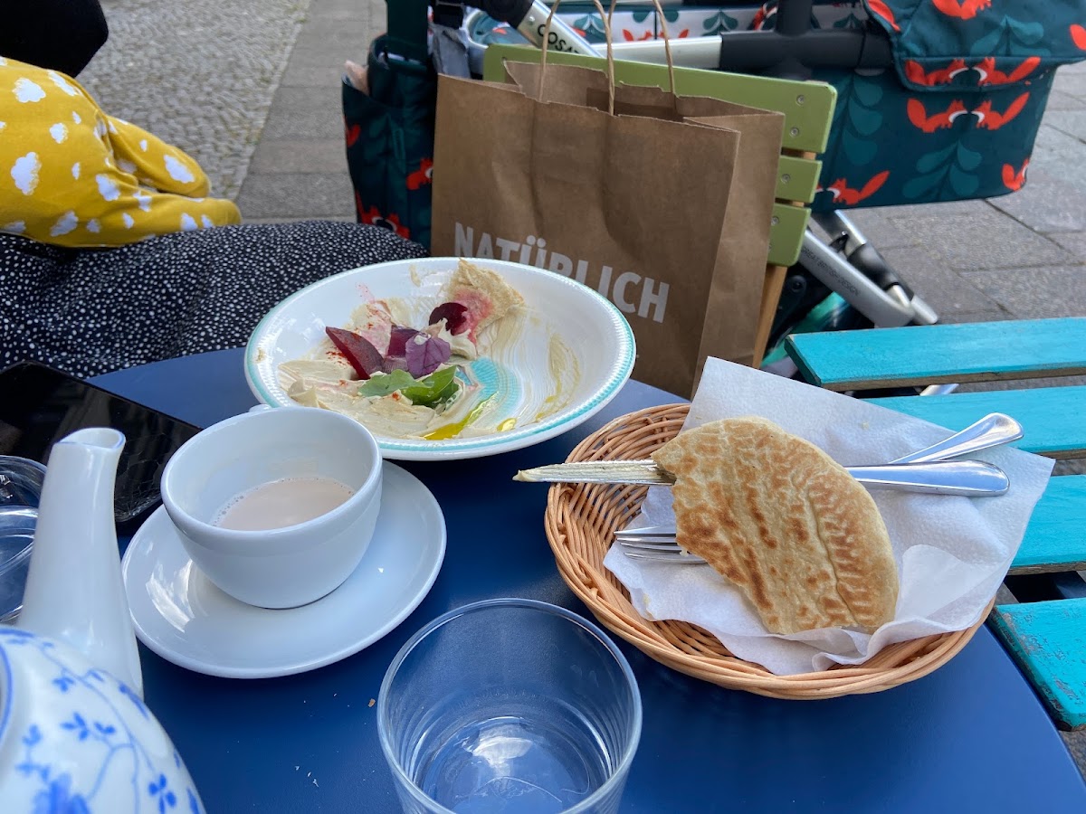 Hidden nice cafe with delicious food options. I had hummus which was really good. They have a lot of vegan options. Would for sure recommend this place
