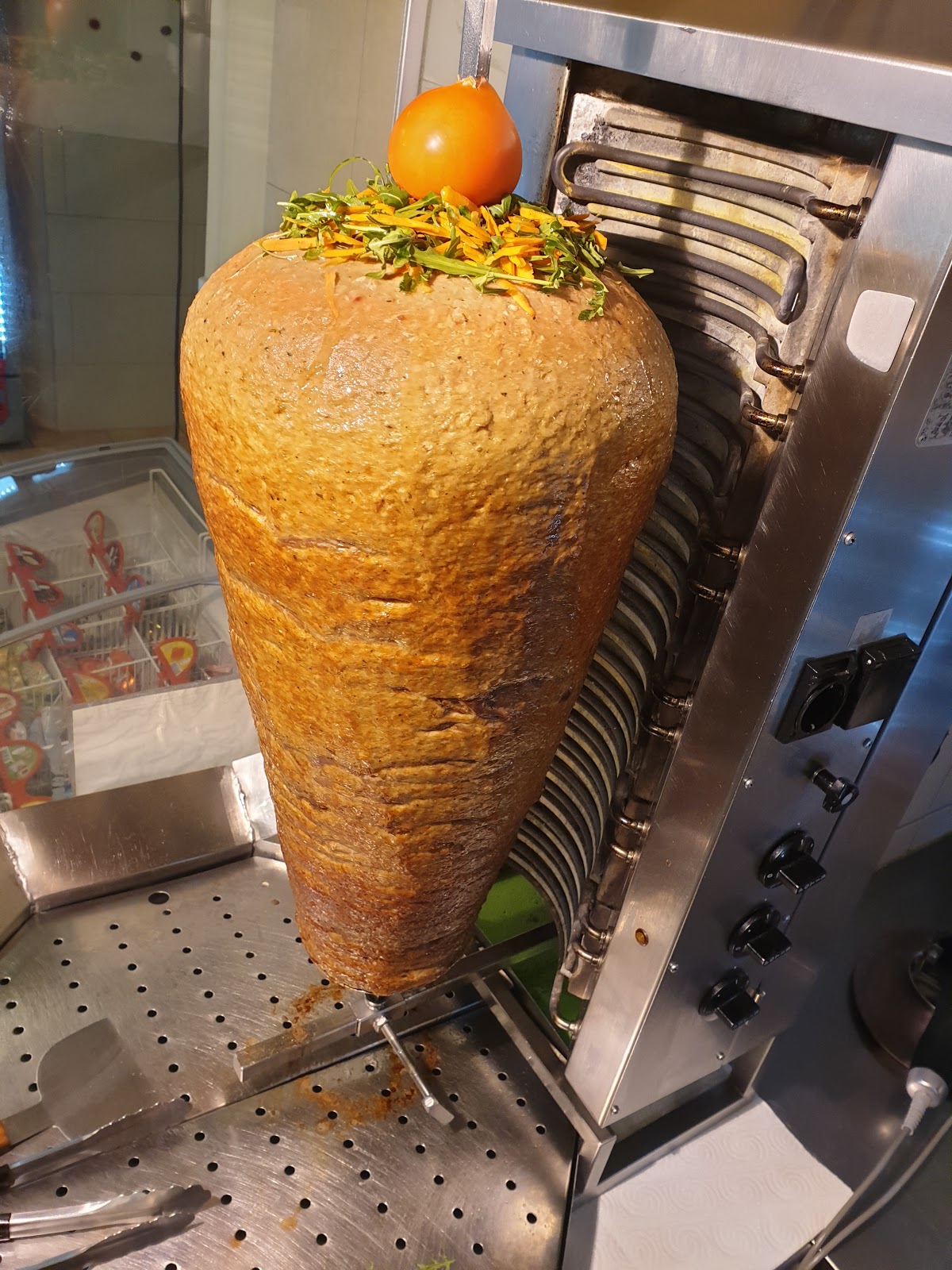 Geschmacklich her eine -10 von 10. Das ist nur gepresster Hackfleisch kein Rindfleisch. Dieser Grill mit dem Sie den Döner machen ist auch sehr alt sieht nicht neu aus..