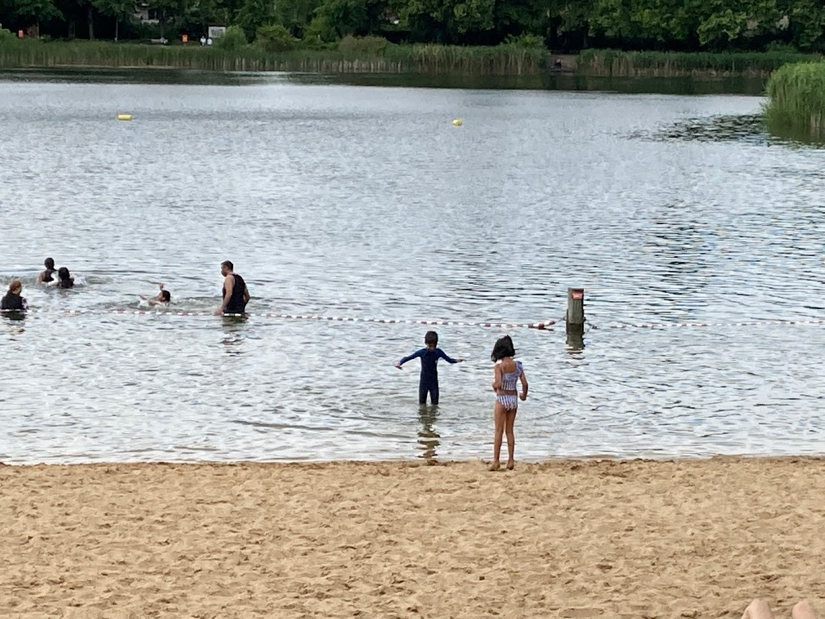 The area is very big! There is both a sandy beach and grass area. You can rent chairs and buy food/icecream in the kiosk but you can also bring your own food and drinks. There are changing room facilities, toilets, showers, and a water slide going into the lake.
