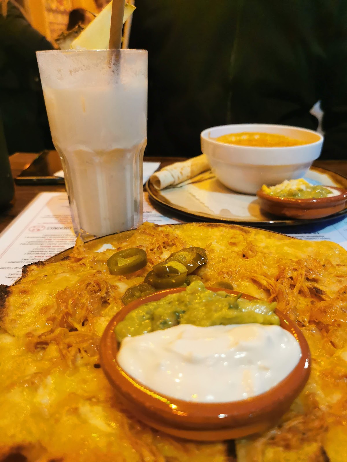 I had a chicken quesadilla which tasted great but was a bit too less food. It came with a salad which was great. We also had fajita which tasted awesome and was served really hot directly from the kitchen. The tacos and bowl are great too.