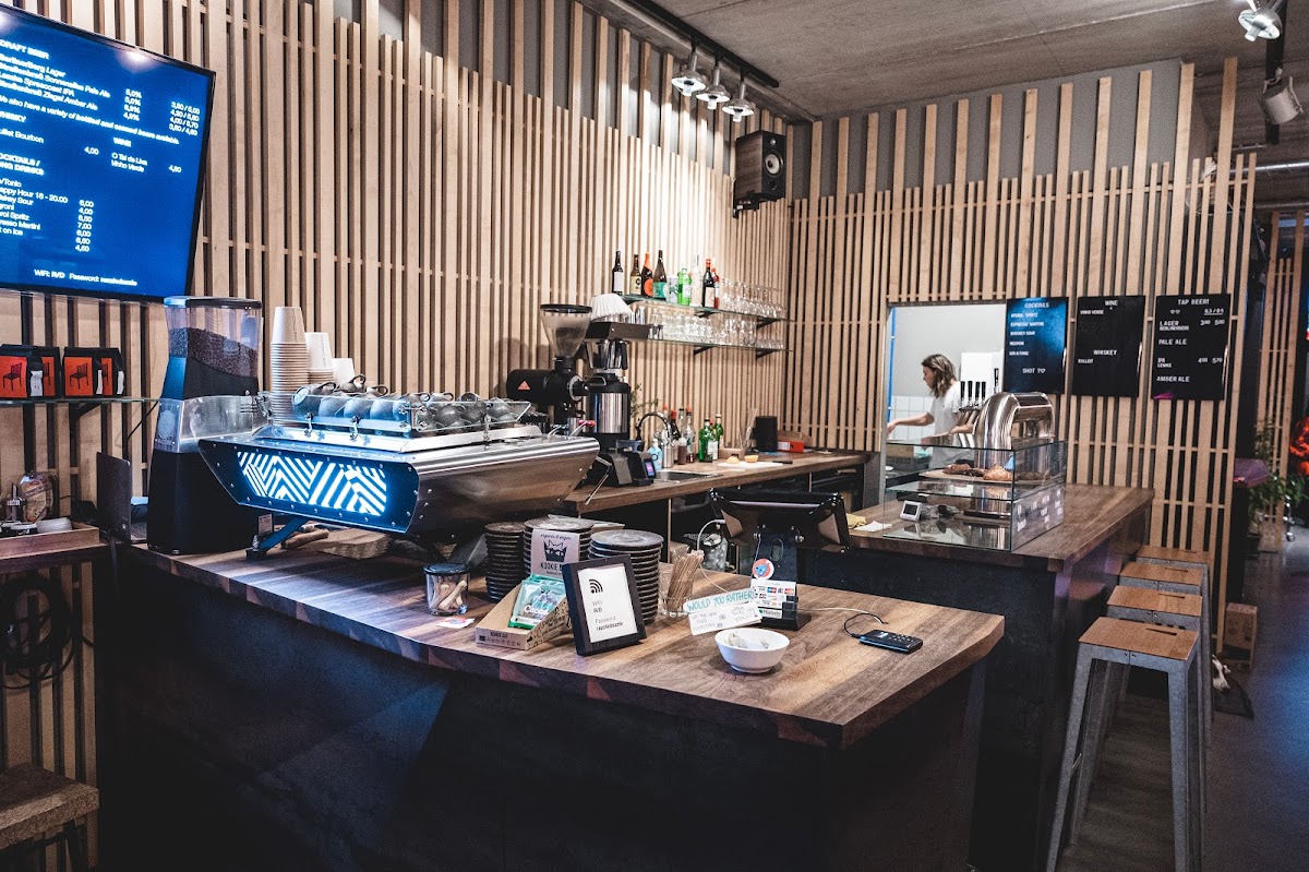 Nicely decorated coffee and craft beer joint, amazing staff, friendly and helpful. They speak fluent English and know their coffee and beers.