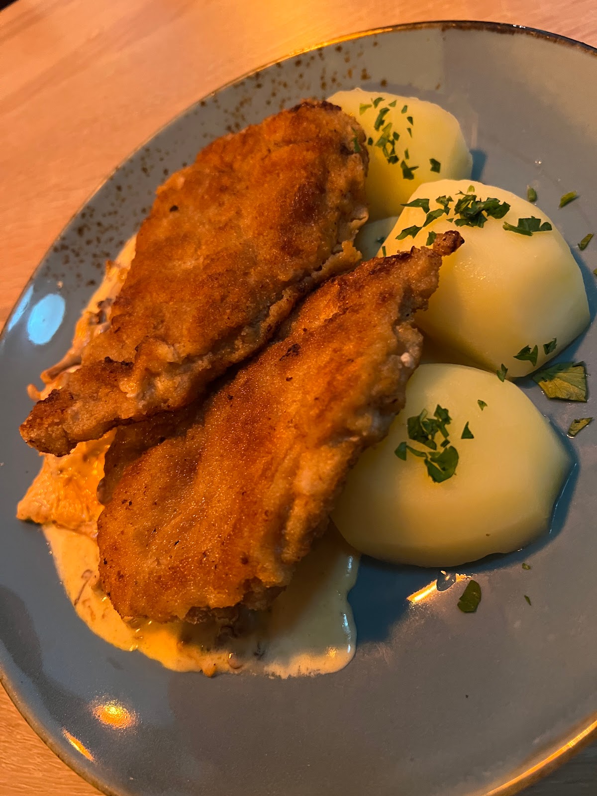 Food was so-so. Pork mostly just dry (though we did get the wrong order, the original might not be dry). The schnitzel seems like some store bought stuff and not very crunchy or tasty. Its not bad, just not good either. The potatoes were great though, but couldn't save the dishes. Service was good, nice people.