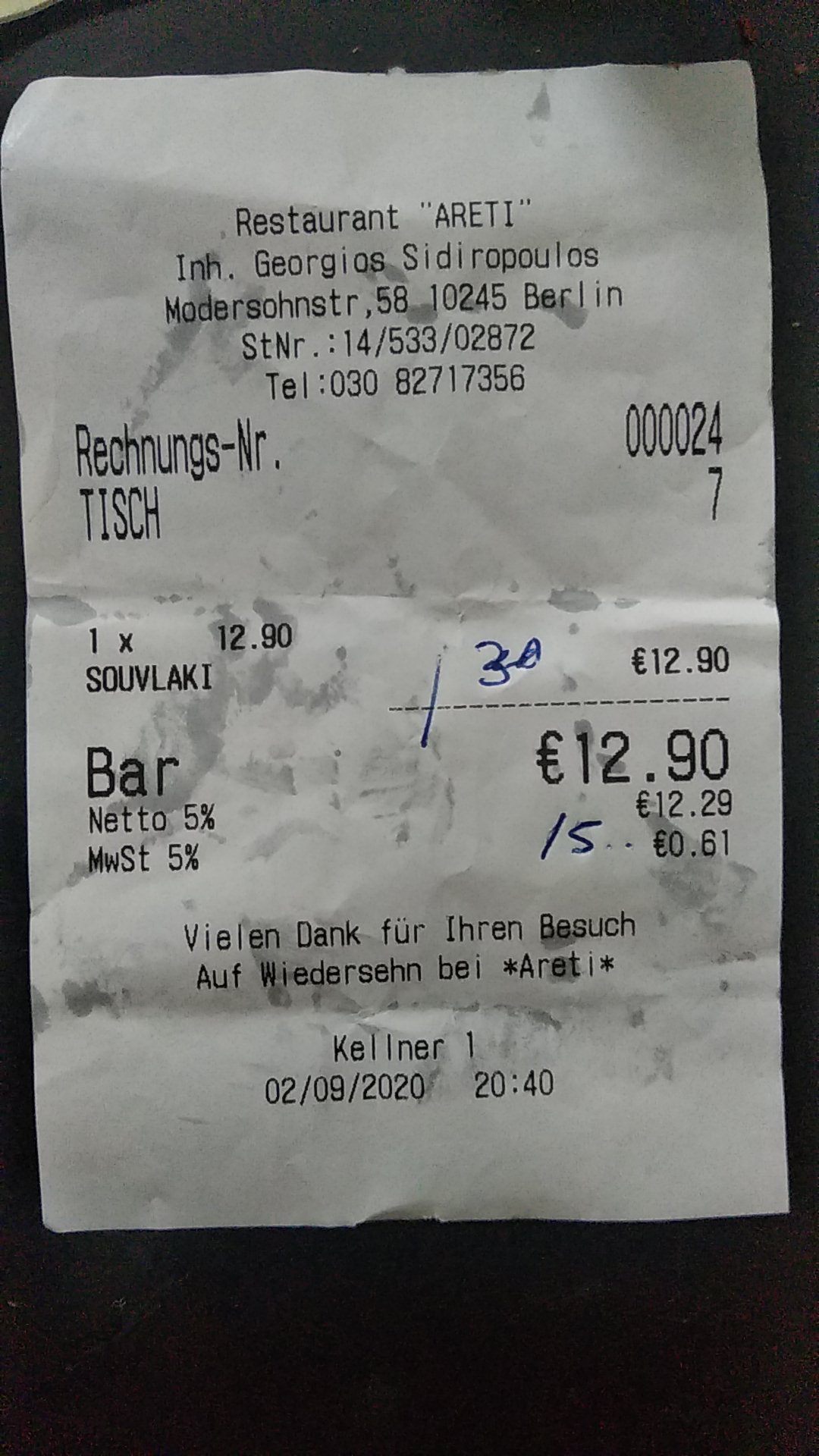Best Greek tavern in Germany. The lamb fillet and gyros were absolutely delicious and and the owner is the most friendly person I met in Berlin. I will definitely come back to this restaurant!!!! I recommend it undoubtedly !!!!
