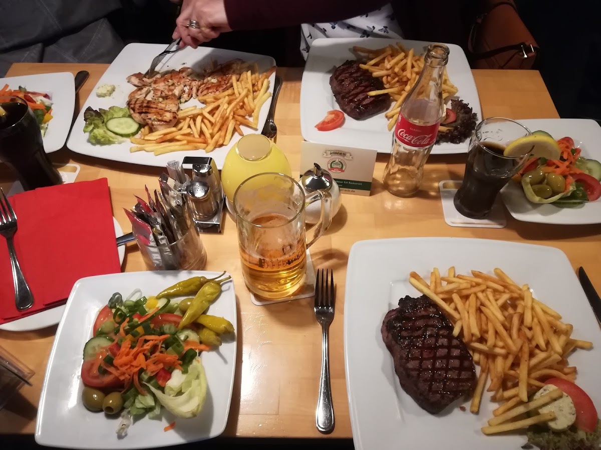 The food was of a high standard and good portions, the staff were very friendly (even with my poor German), the atmosphere was great and other guests very friendly and chatty (again even with our poor German).