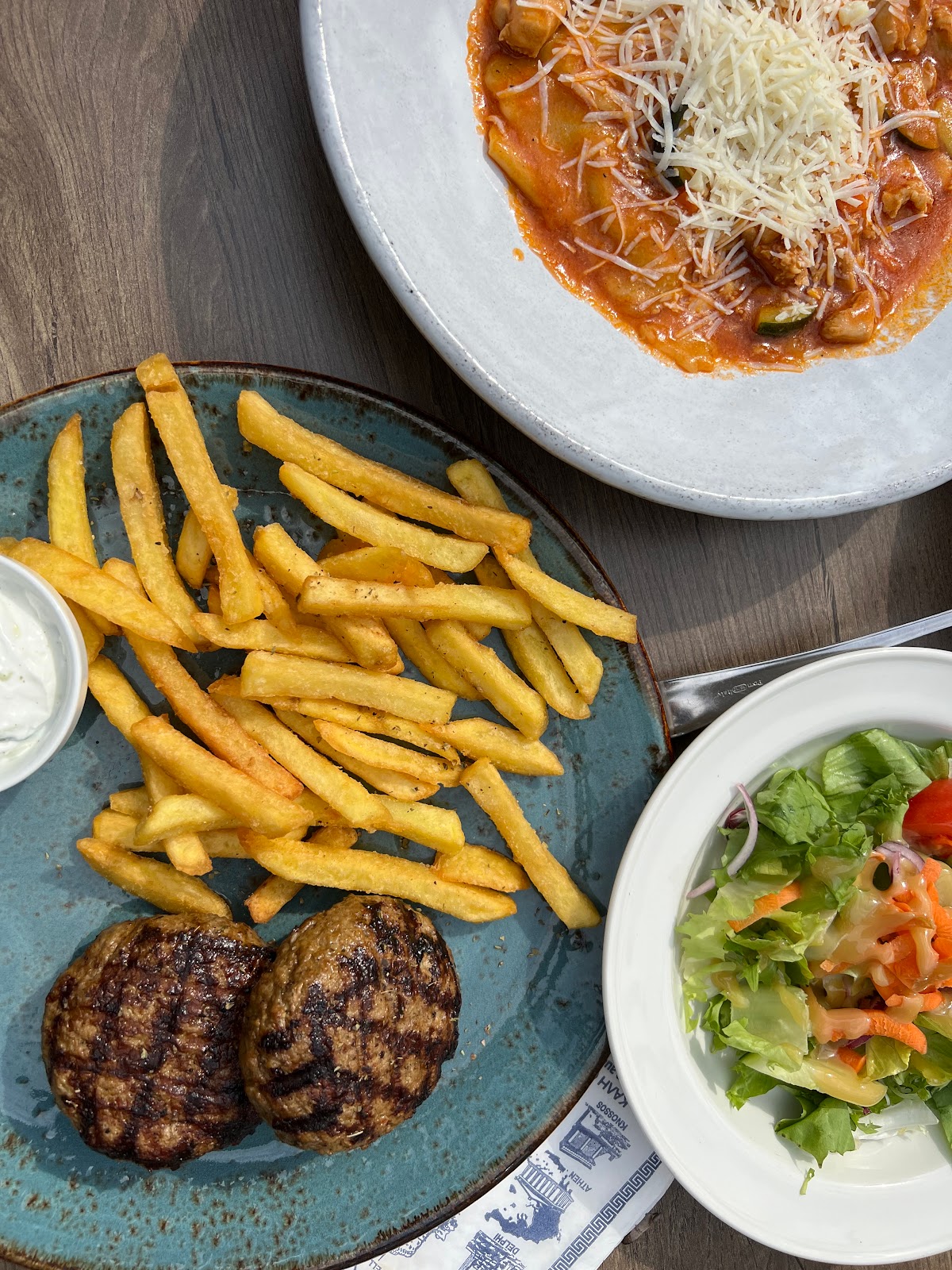 We had Moussaka and really liked that it was served in individual oven-proof dishes, and not, as usual, as a piece from a bigger casserole. For me personally it was a bit too oily, but my husband liked it.