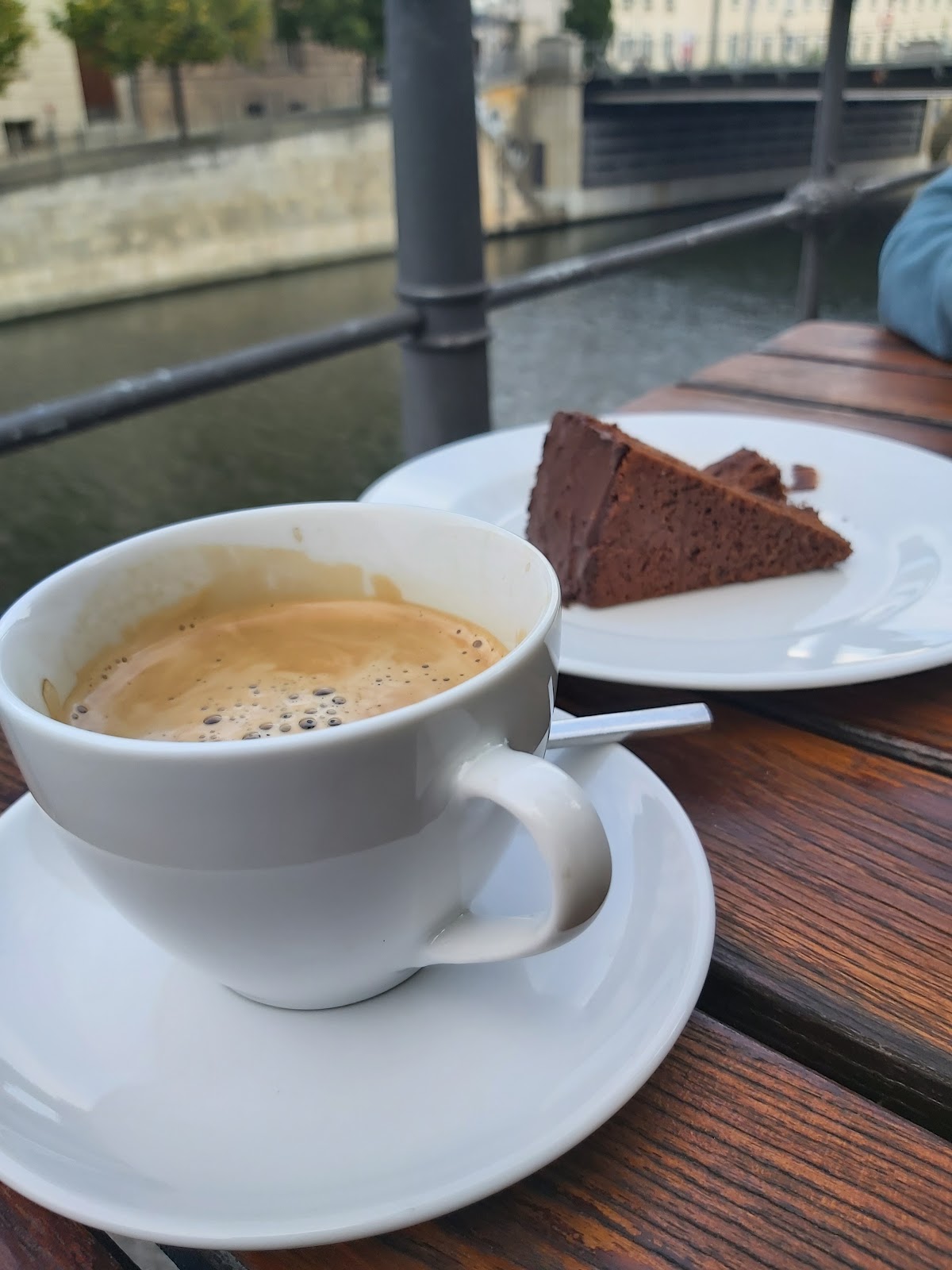 OMG the food is AMAZING! Had Saibling (fish), followed by apple strudel and a hot chocolate (prepare to swoon). It's not cheap but you'll know why you pay more! Service was lovely and really liked the tables being near the river. Also were lucky that the art exhibition was great too. Fantastic morning in Berlin!