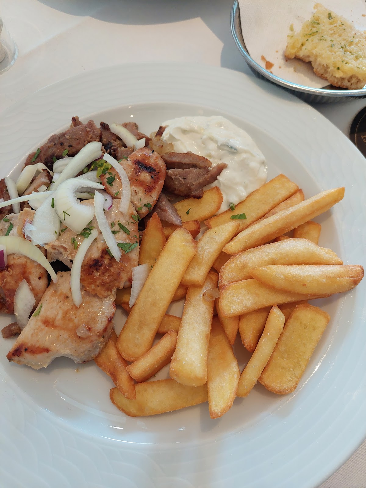 I had an amazing warm garlic bread and Gyros, I adored it! But 5€ for a bottle of water...too much!