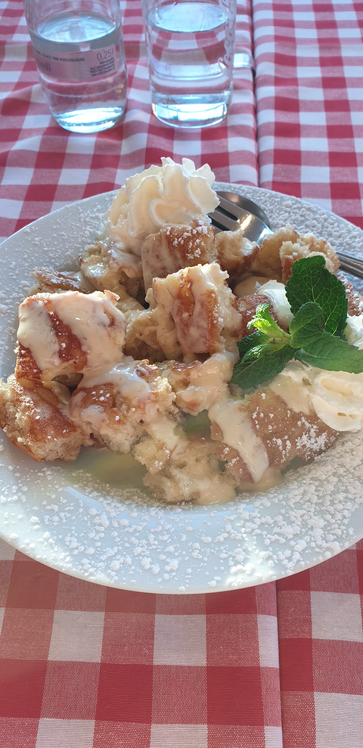 Kaiserschmarrn was offered as a dessert, unfortunately only with vanilla sauce and cream....and a finished product!!!!
