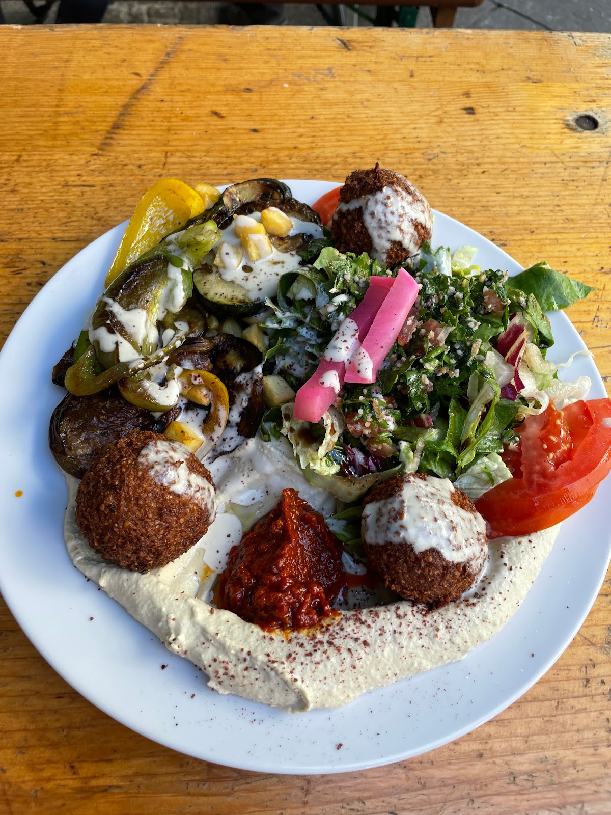 Great falafel, fresh vegetables and nice staff.