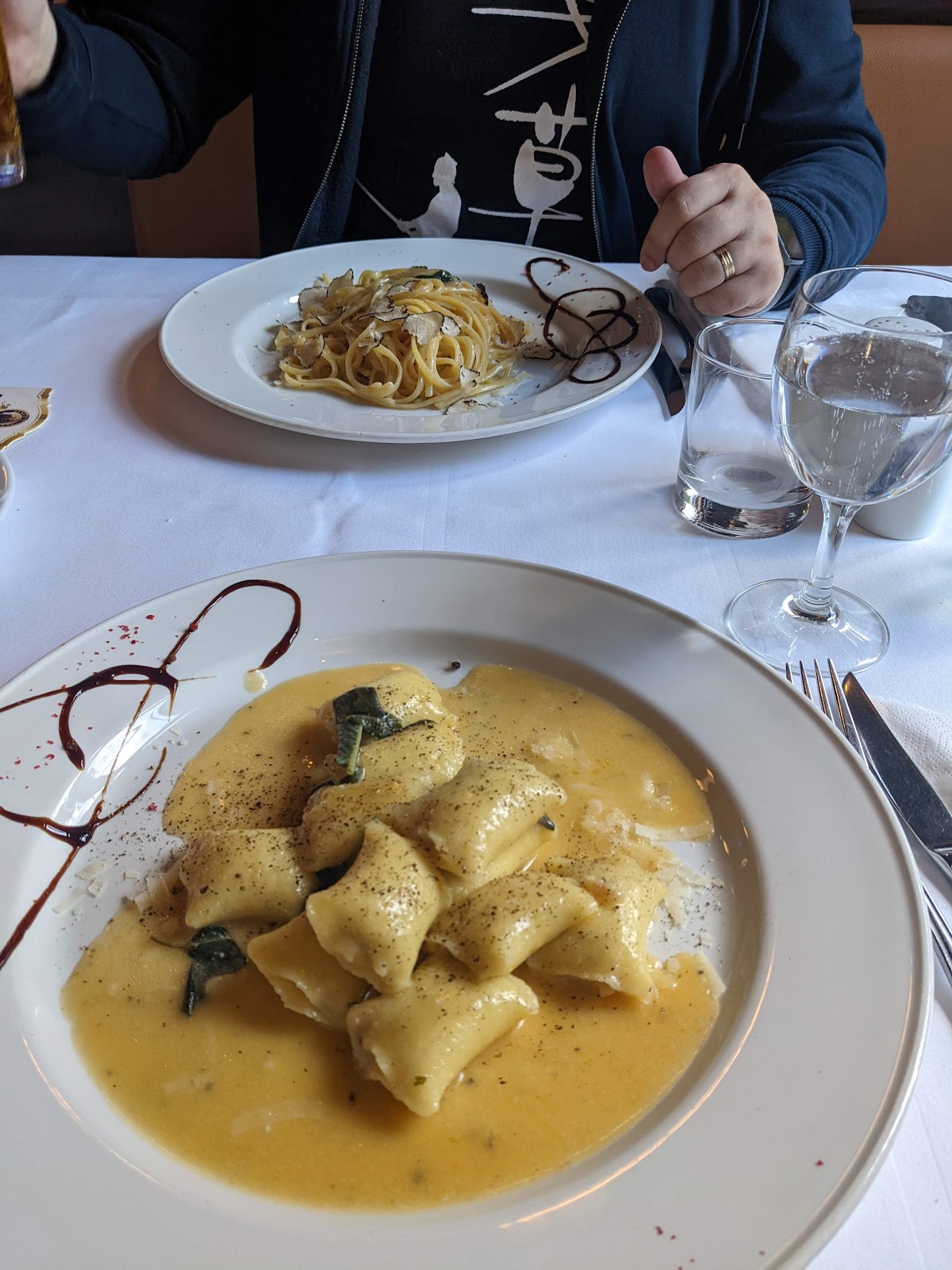 This is our new favorite Italian restaurant in Lichterfelde. All dishes we've tried have been consistently excellent: pastas, pizzas, salads, desserts. The waiters are exceptionally polite and helpful. They're sometimes slow, but that can be good actually; it's a great place to relax with friends and not feel hurried.