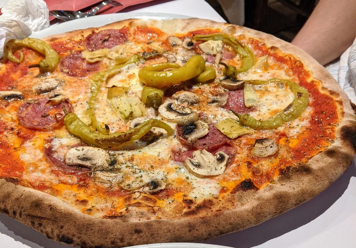 But: horrible Pizza, fake cheese which is not browning, at times very uneven dough which results in horribly burnt pieces. Their Pizza Mista has tons of onions on top (what the hell??) , huge red flag!