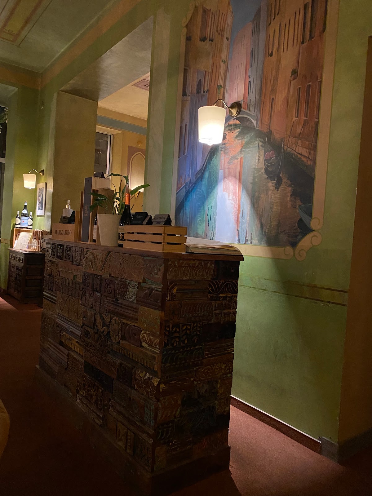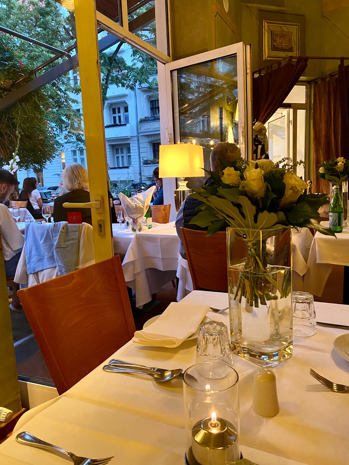 Staff is super friendly, the street and surroundings very green and soothing. I ordered the fish soup and red beet gnocchi. Two simple dishes. First, the fish soup came out burnt with a big scampi that had its time a long while ago. It made my stomach turn immediately. Luckily the friendly staff noticed and asked what I wanted in return. I asked for a salad, which came with salmon, which was not too bad but again, with that taste of barbecue burn, and wet with olive oil. Perhaps German people like it that way but it killed all the fresh flavours of the product. Then came the gnocchi of red beet with mascarpone and walnut. It was interesting but oh so heavy, again swimming needlessly in oil and vinegar. The taste of the red beet was overshadowed by the big grated parmezan icing. I would recommend the chef to go easy on the oil, add herbs like sage or ruccola, lighten it up, not heavy it down with more cheese. I did have an interesting conversation about it with the host and got a free desert, a nice strawberry tiramisu made without coffee. The coffee I added myself. The menu does have some very nice grappas. All in all, I can recommend it but stay away from the fish.