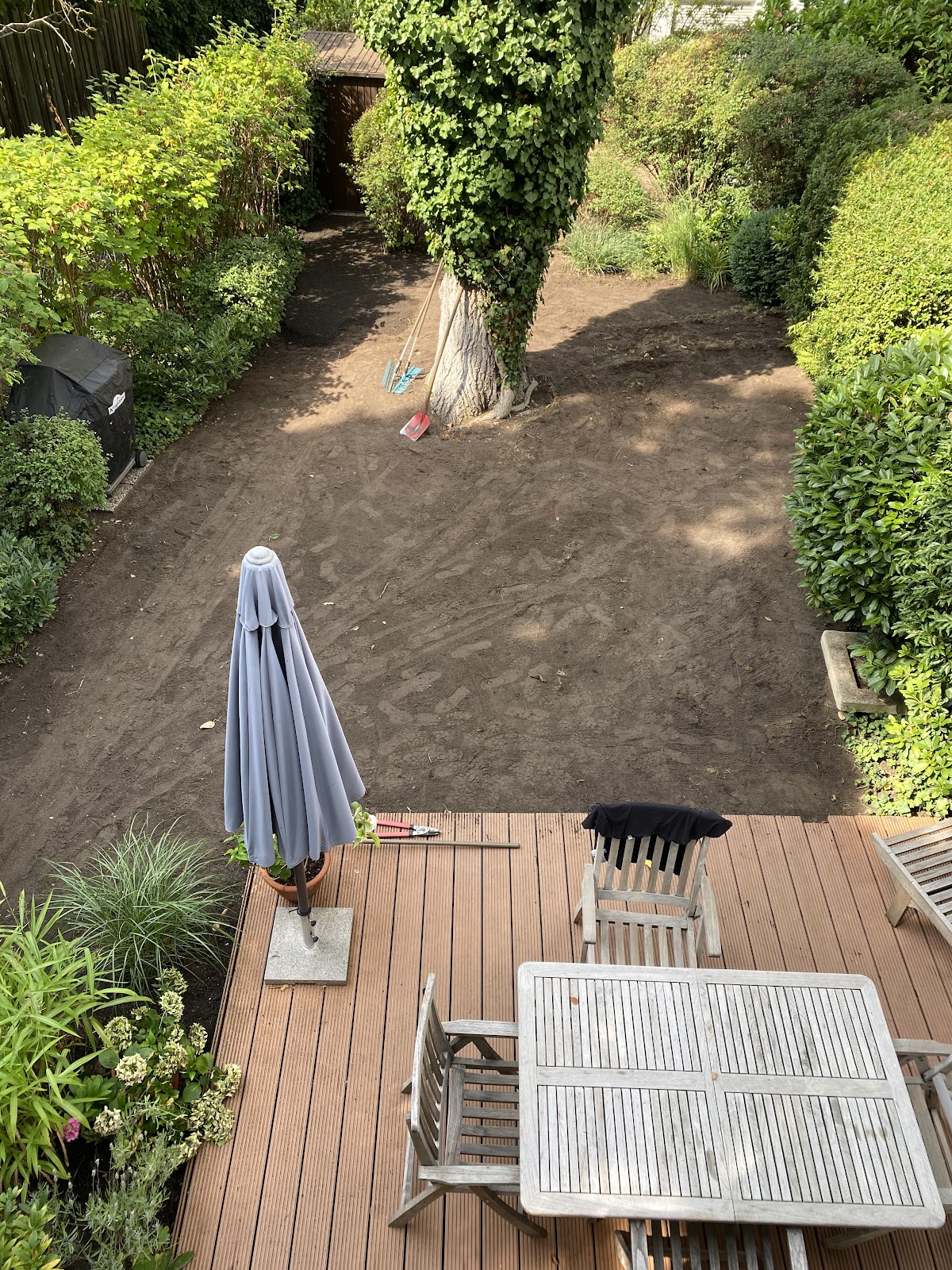 Heute wurde der Rollrasen bei uns verlegt; vorher Wüste jetzt eine kleine Oase: Das sehr freundliche Team hat aus meiner Sicht alle Vorarbeiten sehr sorgfältig erledigt (Abtragen des alten Rasens, Wurzeln raus, Unebenheiten mit Mutterboden ausgeglichen, etc.) und ist ohne Murren gern auf alle Wünsche eingegangen. Es wurde sehr zügig, sorgfältig und …immer freundlich gearbeitet und alle Fragen (auch wiederholte ????) gern beantwortet. Das Ergebnis sieht jedenfalls toll aus; jetzt bleibt nur noch zu hoffen, dass der Rasen mit der nötigen Pflege anwächst…ich bin gespannt!