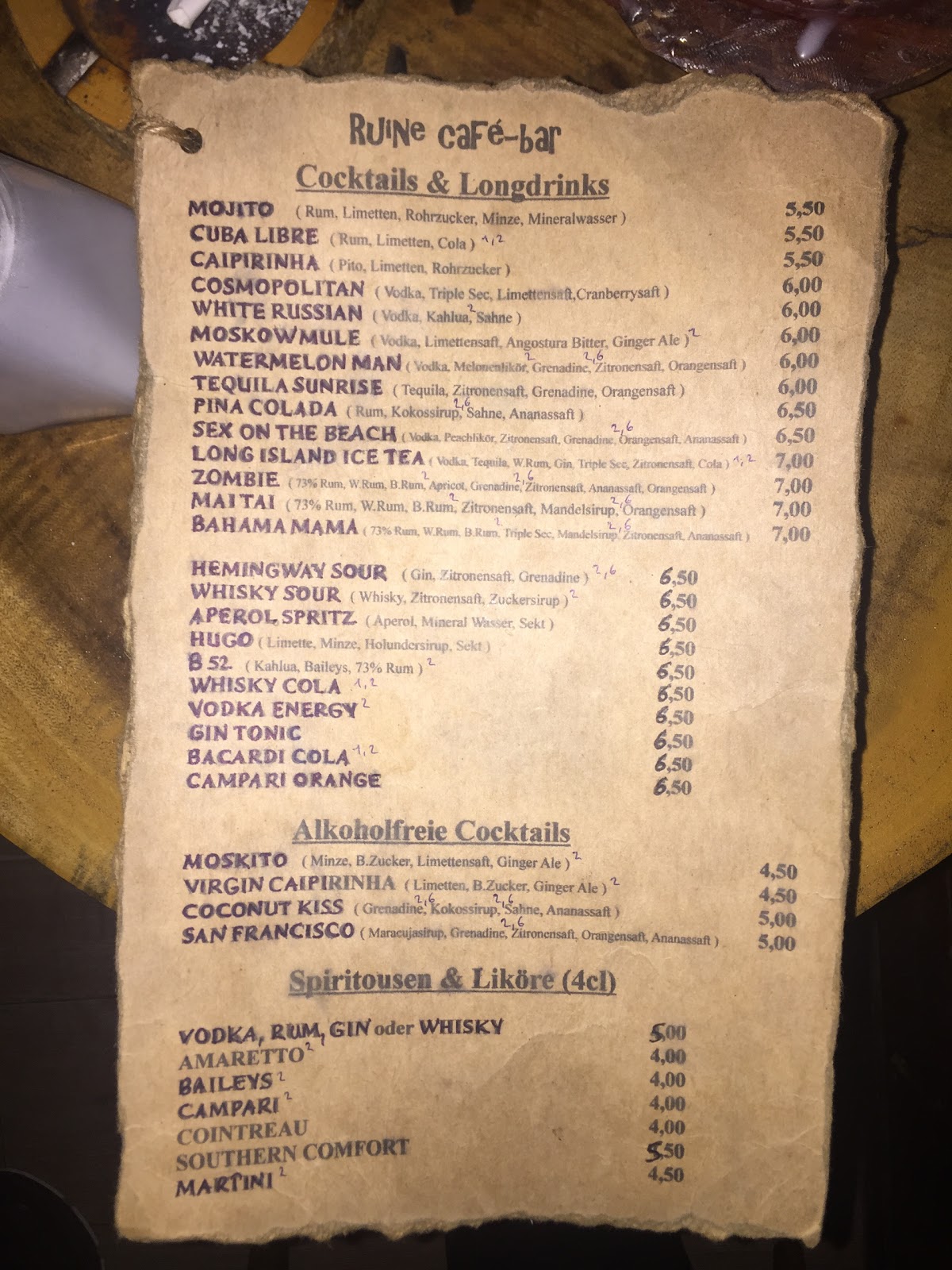Awesome and cheap cocktails. It's not on the menu anymore but if you ask the bartender he'll probably make you a "zombie". 2 of those and you'll be very drunk. They go down far too easily. Be warned!
