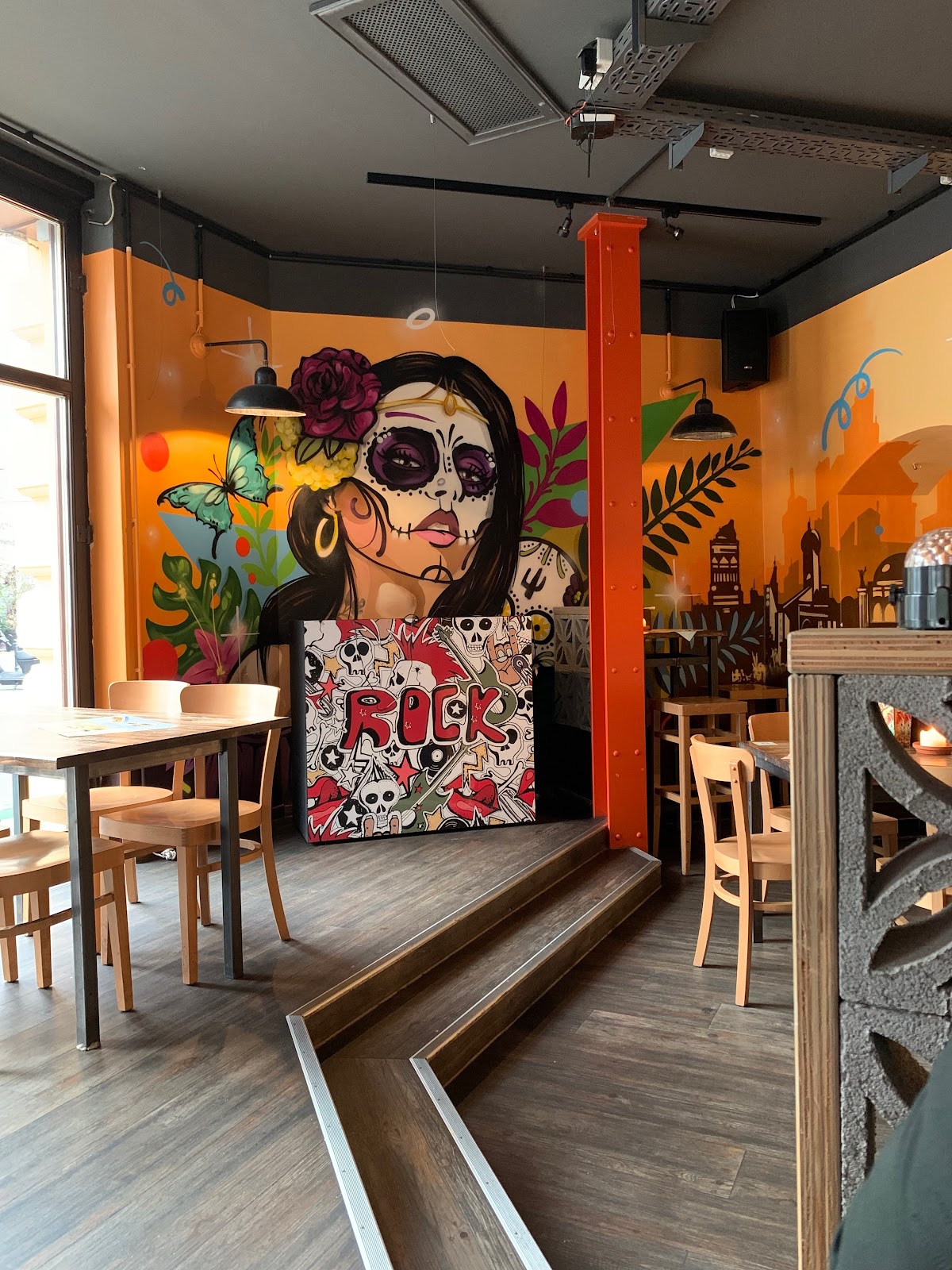 It is nice to come here to have cocktails and some tapas. The drinks menu is long, the tapas is short. Our waiter was very friendly and because the place was not full we did not have to wait long. We started with classical nachos with our first cocktails and shots. Small cocktails go for 8,50€ large for 12,50€. It was happy hour until 8 pm so the second round is for half the price. The frozen Margaritas were good, the friend-zone was not my taste. We ordered one was sea food and chicken and other with chicken tortillas. The sea food had exactly three shrimps for three extra euros which is really not worth it. So stick to the 15,50 € Vs 18,50€. The Salsa was not as spicy but the guacamole one was not bad. We asked for Martin espresso which was not on the menu and got it, it was good. We were not able to finish our dinner and got the rest in doggy bag. The toilettes in the underground area are very clean and nicely done. It is nice to come here with friends but maybe not on a first date.