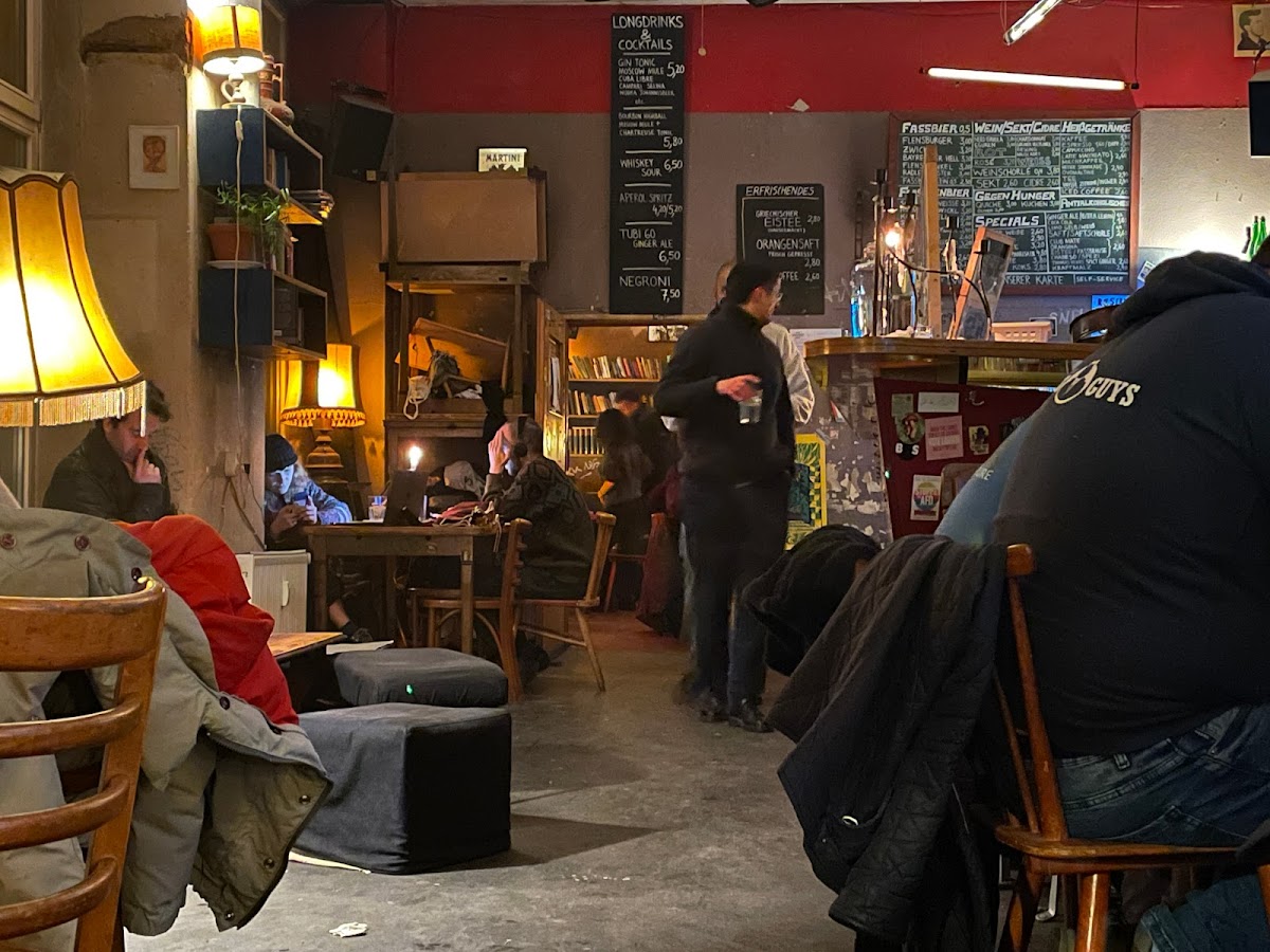 Absolutely the most loved place in Berlin. The prices fit for everyone, you can drink really good stuff, and the staff is always kind! You can sit in no smokers area or smokers area and work, read, take relax or meet new interesting people for hours! Absolutely i love it! ❤️