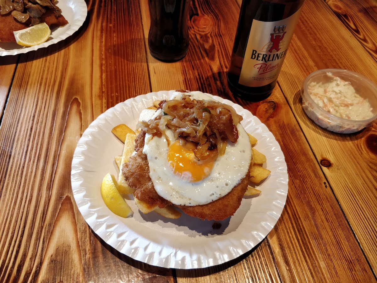 Being in Germany, I must squeeze in a schnitzel meal! After finishing up the East Side Gallery, Scheers is located nearby at the corner. There was a line of ~6 people ahead of me and 2 working. A little slow ordering, but meal came out fast. Very good for the cost and amount, I was full and just right for a quick meal. Would recommend if you need a quick bite!