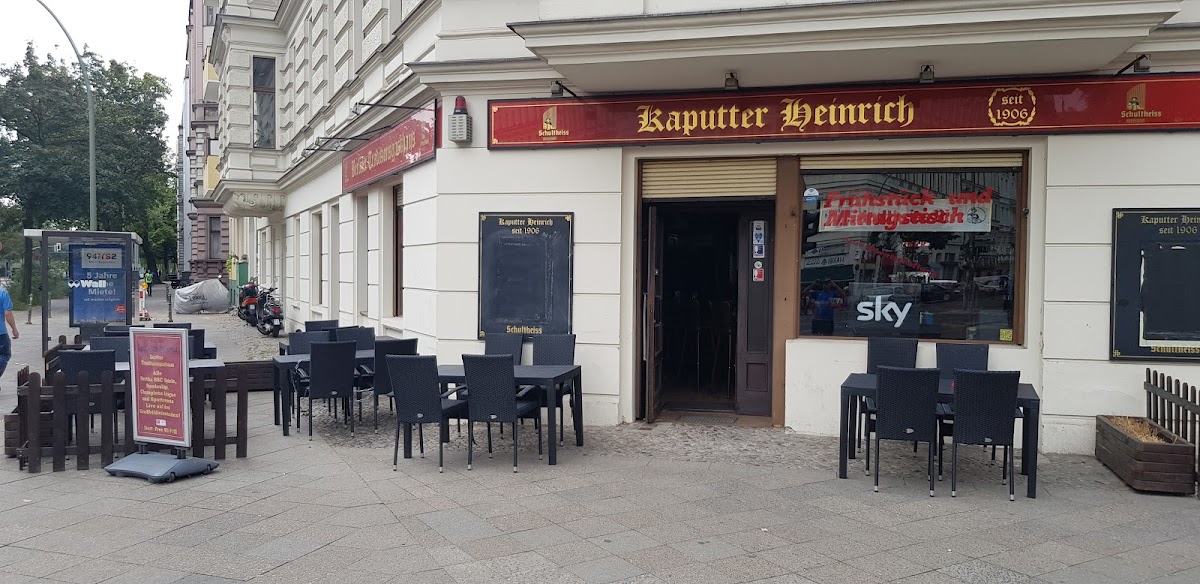 (Translated by Google) Typical Berlin "Pinte" with outside seats in warm weather and a "Molle" hiss! Pleasant pub with pleasant prices. With live TV football and everything else that is important live.