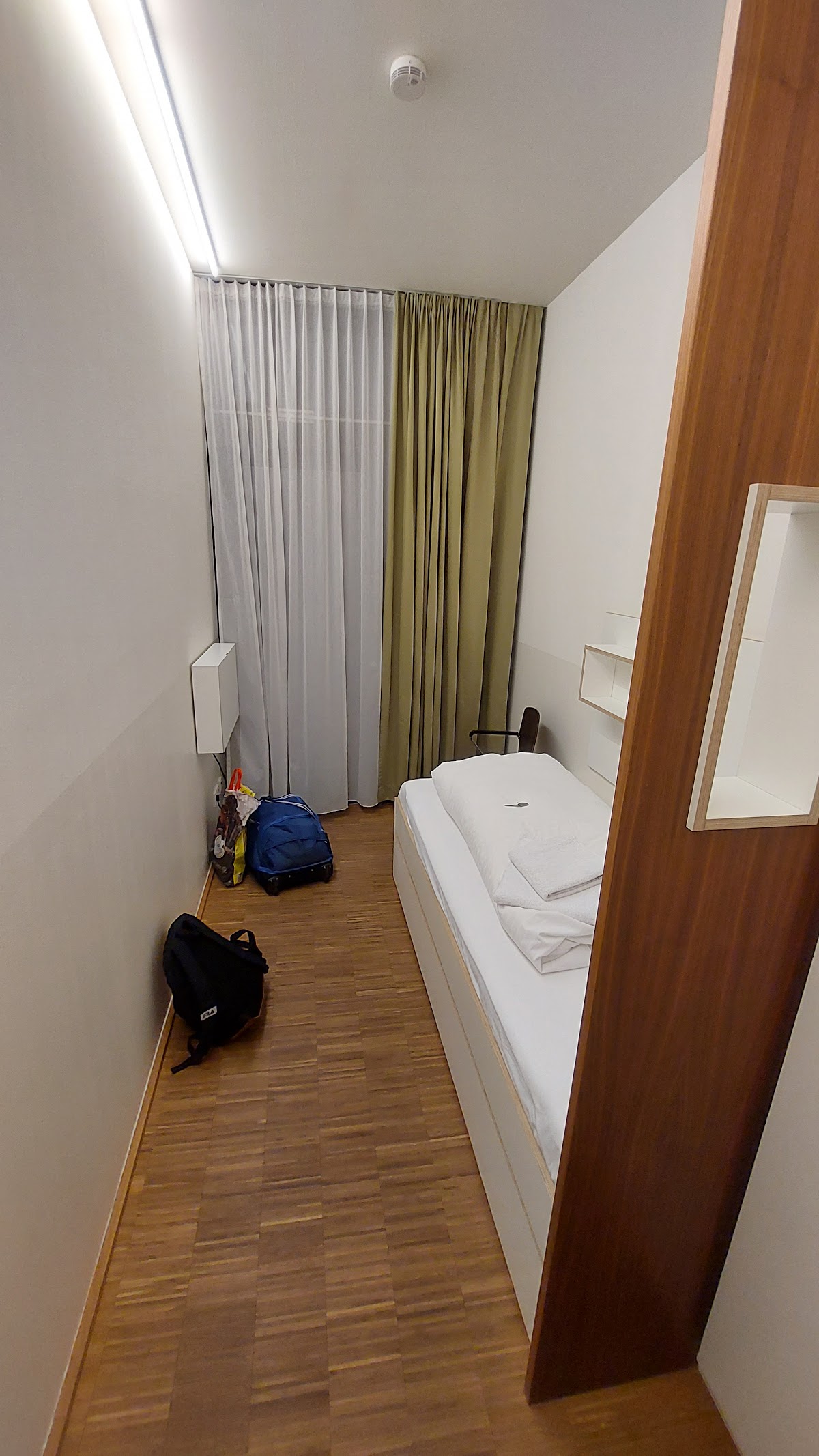 First, what it is not: 1) It is not a hotel. It is a floor of a residential building; 2) It is not a hostel. There are shared bathrooms and a small kitchen area, but it's not really a hostel, as there is no common area for hanging out, the guests trend considerably older than most hostel guests, and it does not seek to be convivial. There are no permanent staff on duty. There are no TVs. It's as if you booked a comfortable cell in a modern monastery.