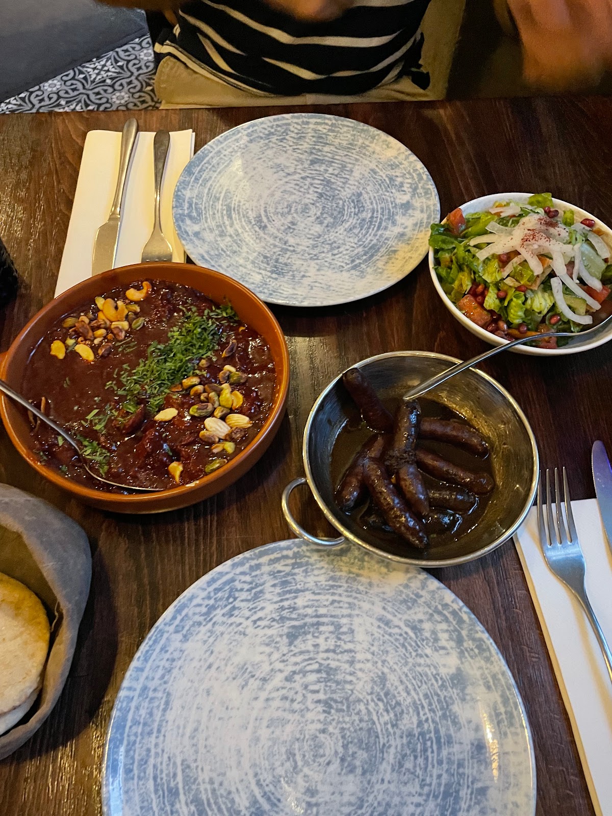 We paid €70 for 2 including 1 salad, 1 vegan shawarma, 1 main dish, 2 drinks and a bottle of water. That’s quite expensive compared to what we got in terms of the whole experience.