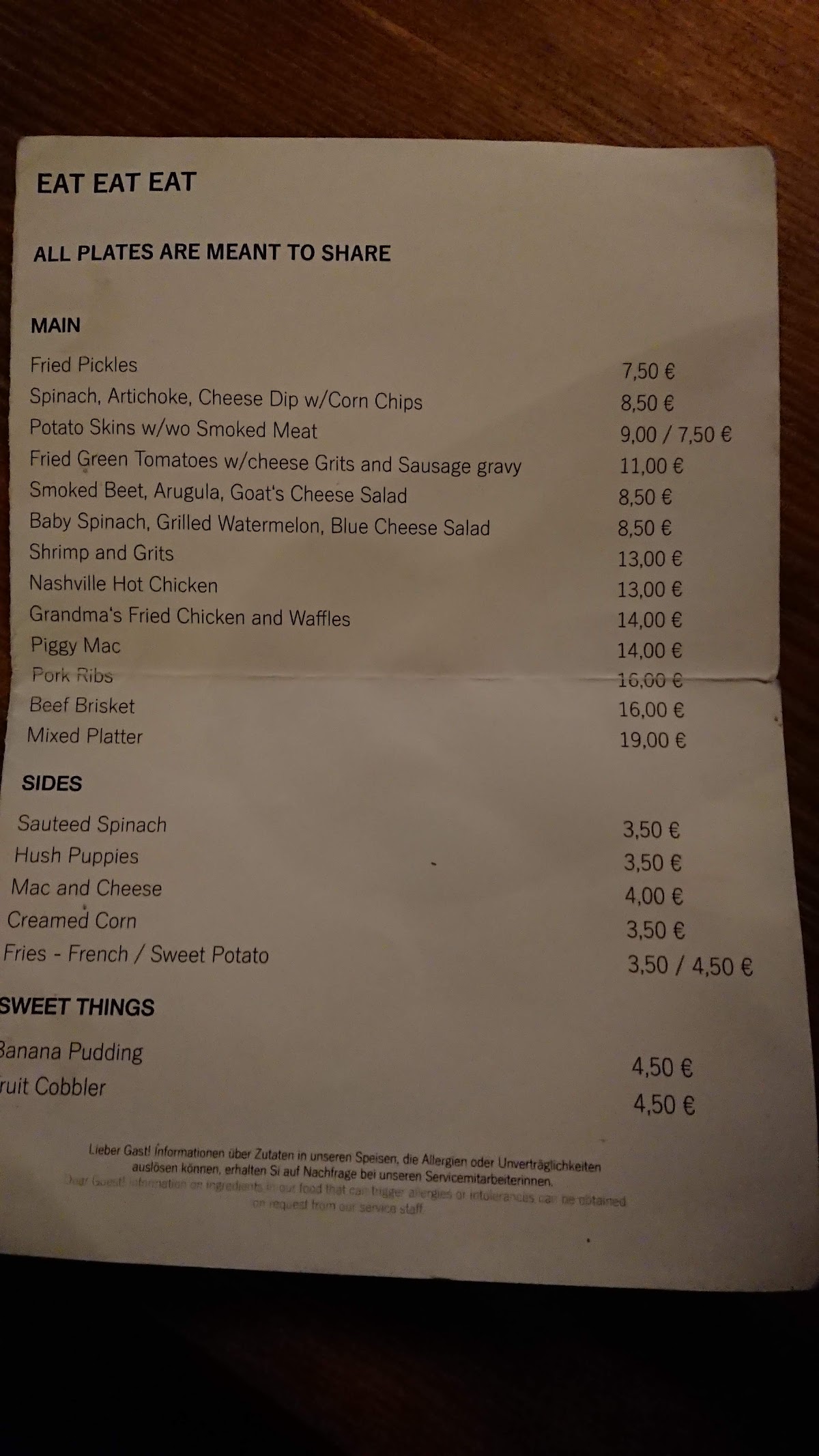 Made reservations. No problem. Cool little place near Kulture brewerei. They were out of hush puppies fried green tomatoes and we would have had to wait 30 min for ribs. No prob. Ordered drinks and a meat platter with brisket, a grammas chicken and a spicy chicken with brisket fries and mac and cheese. Chicken was excellent. Both recipes. Brisket tasted perfect but having cooked brisket many times I had hoped it would have been a bit more tender. Still, a great taste. Fries were good. Max and cheese was delightful. Tasted homemade. Service was professional and friendly. Decor was a bit dark with a blue Ridge mountain theme (I would say as an American). Clean, comfortable, good menu, great food. A reason to come back and try the hush puppies and ribs.