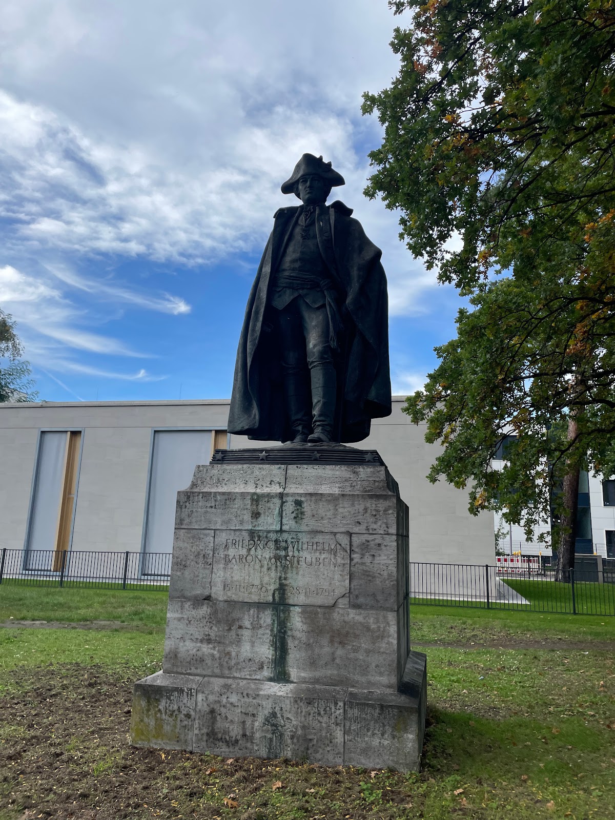Steuben's bronze statue has stood in Washington's Lafayette Park since 1910. At the same time, the United States Congress gave Kaiser Wilhelm II a duplicate as a sign of friendship with the German people. The bronze statue was erected in 1911 on the Fiakerplatz at the Potsdam City Palace and the square was renamed Steubenplatz.