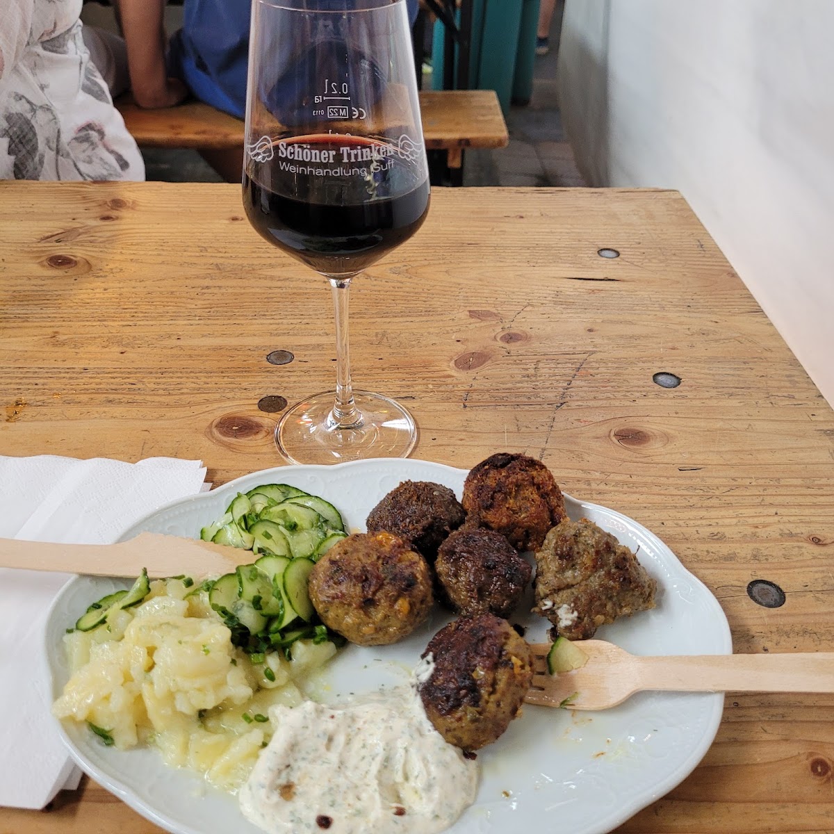 Very popular spot for tourists and locals. Lots of different dishes on offer as well as wine and beer to complement your meal. Bring cash as some stalls don't have card facilities. Stalls dedicated to vegetarian food as well, so something to suit everyone.