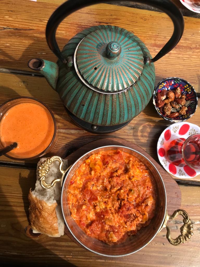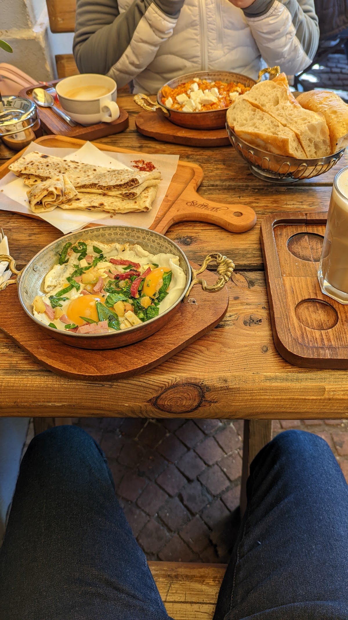 Delicious Turkish breakfast. A welcome break after days of eating sliced meats and cheese with bread as breakfast in Germany.