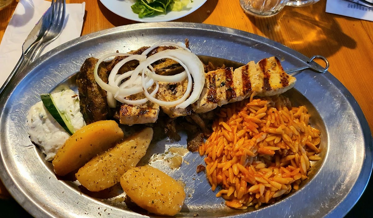 Perfect spot for a wednesday evening dinner with friends. Starter set for two people was more than enough for four with a couple extra breads. Main courses plentyful and hearty. Staff don’t speak english and I don’t speak german, doesn’t matter because they are professionals and get the job done. Got complimentary Ouzos for our group with the bill and even without that would highly recommend. 5/5