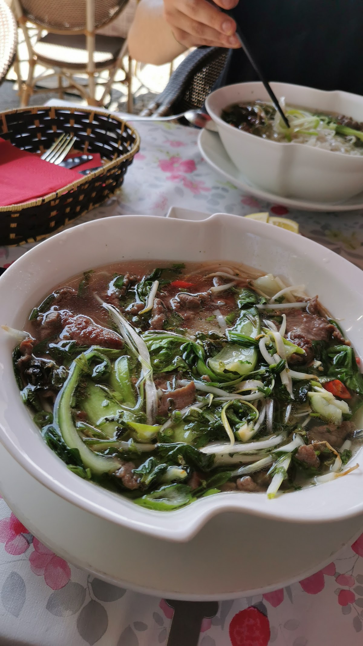 The food is very tasty, and the portions are huge. The Pho soup is probably 1.5 liters. Very cheap. For the soup (we left 2/3), curry chicken and 4 glasses of wine We paid 25 euro.