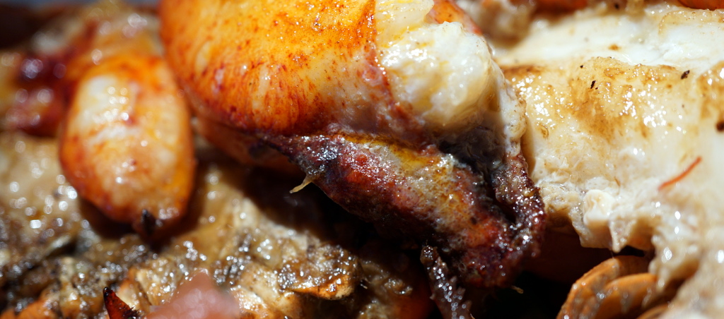Our second appetizer was The Grand Caesar Salad, consisting of romaine lettuce, tomato crostini, bacon croutons, parmesan a wonderful Caesars dressing with a sprinkling of anchovies salted, served with half a lobster.