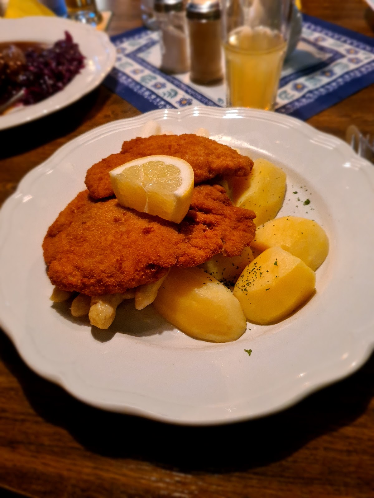 Incredible food we had during Spargelzeit. We had the asparagus with smoked ham and potatoes with parsley, and a beef roll. The asparagus dish was phenomenal. Very cozy interior. Music was a bit not fitting the place, but a minor detail.