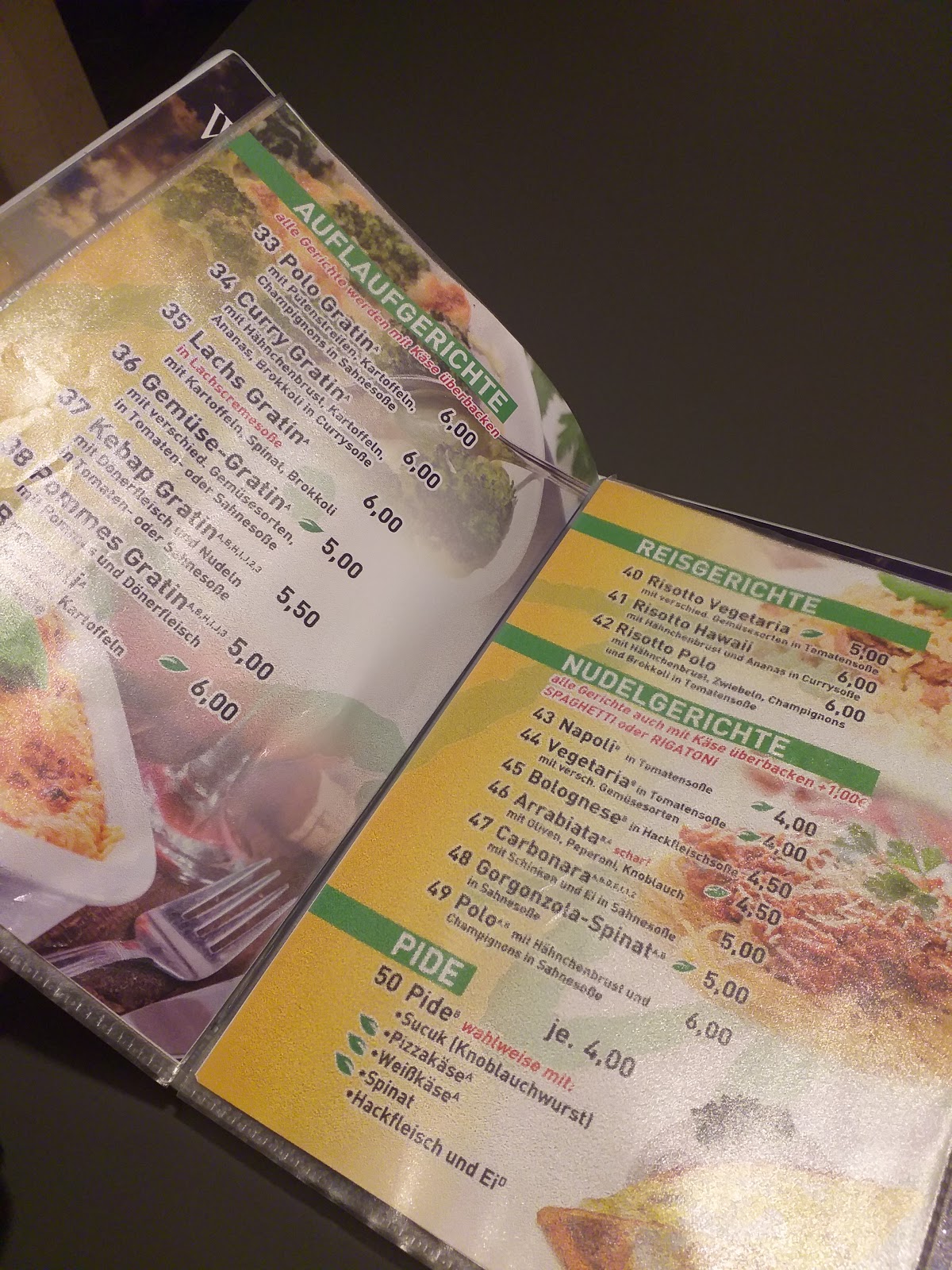 Terrible pizza for the 7 € I paid. Pre-shredded cheese which doesn't melt. Bland tomato sauce. Borderline undercooked. Service is not great and if you want to lunch there don't be surprised if you must listen to heated debates on Turkish cable tv. Also they didn't have rice during lunch hours even though it was on the menu.