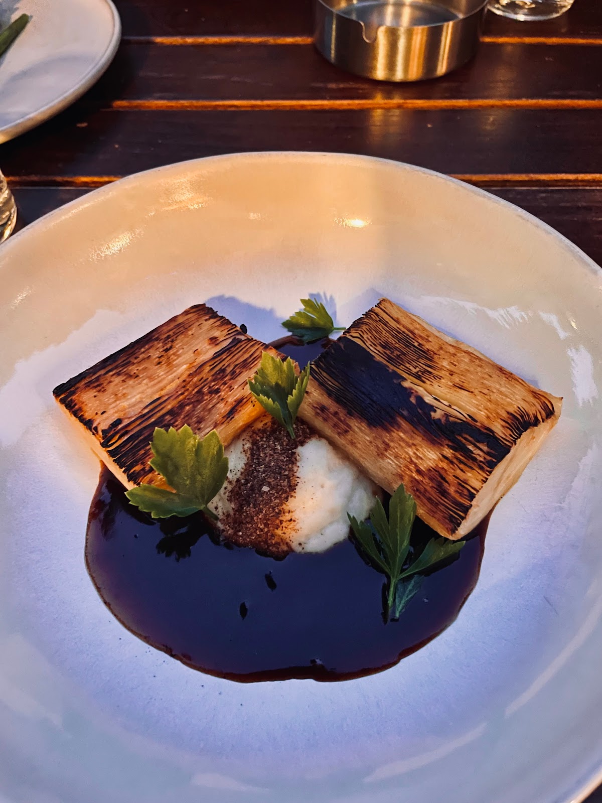 Delightful. Contrary to other reviews, for the price point you're getting more than enough value here. The mushroom tartare is the winner. That is easily one star material, for sure. So multilayered and complex. So comforting. So autumnal. Truly a memorable dish. The beef breast was super tasty and the portion very generous. The top was crunchy and the inner was juicy and tender. The wine choice was a dornfelder.... a discreet accompaniment to the boldness of the meat which I thought was just right. The sauces were delicious but they were mere spectators, as the meat holds its own spectacularly. The mussels were a fun dish, too. Wine pairing mostly on point with hardly any faltering. Highly recommended if you are into similar concepts such as Barra, etc. When peak oil starts hitting hard, this is hopefully going to be the (necessary) future of gastronomy.
