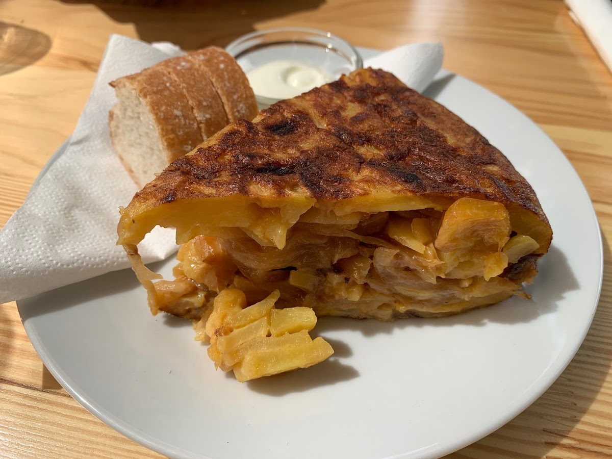 Spanish Tortilla de patatas and the empanadas are their best. They also have Portuguese classic desert ‘pasteis de nata’. Coffee is also good. And they also offer drinks (Spanish beers from 3,50€).