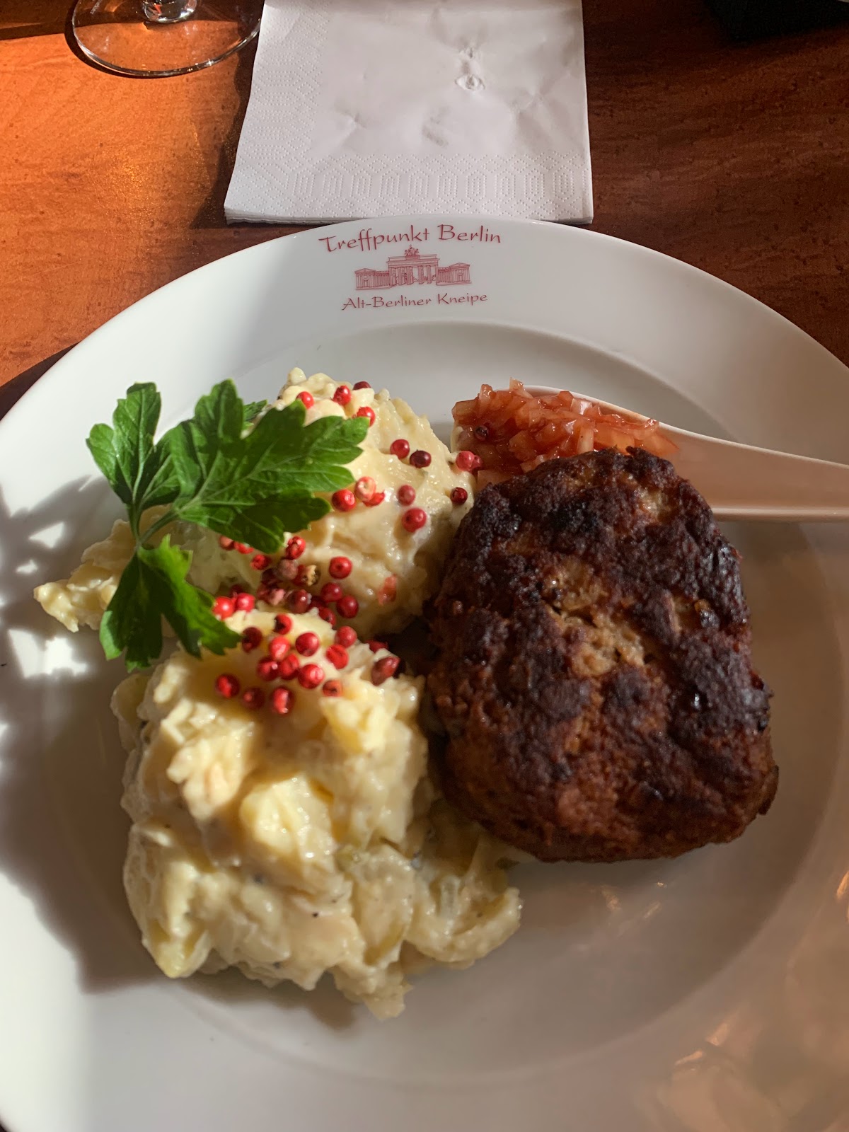 Traditional food from Berlin and Germany, close to the main attractions of the city and for a reasonable price. The atmosphere of this place is incredible, so authentic and with good music. A place keep going when you visit Berlin