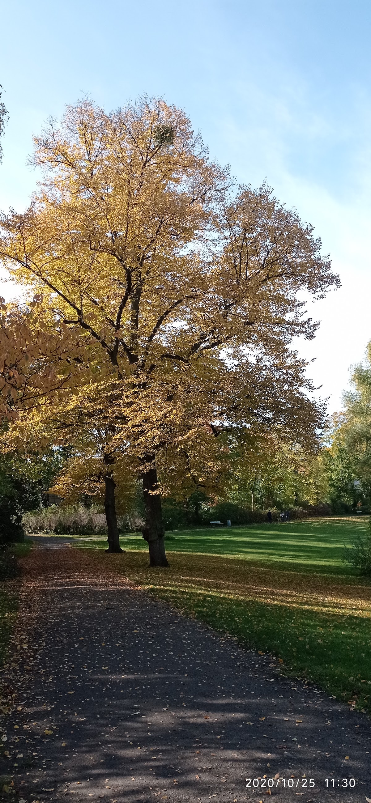 Der Park ist gepflegt und sauber. In der Mitte ist ein Teich und es gibt Enten.