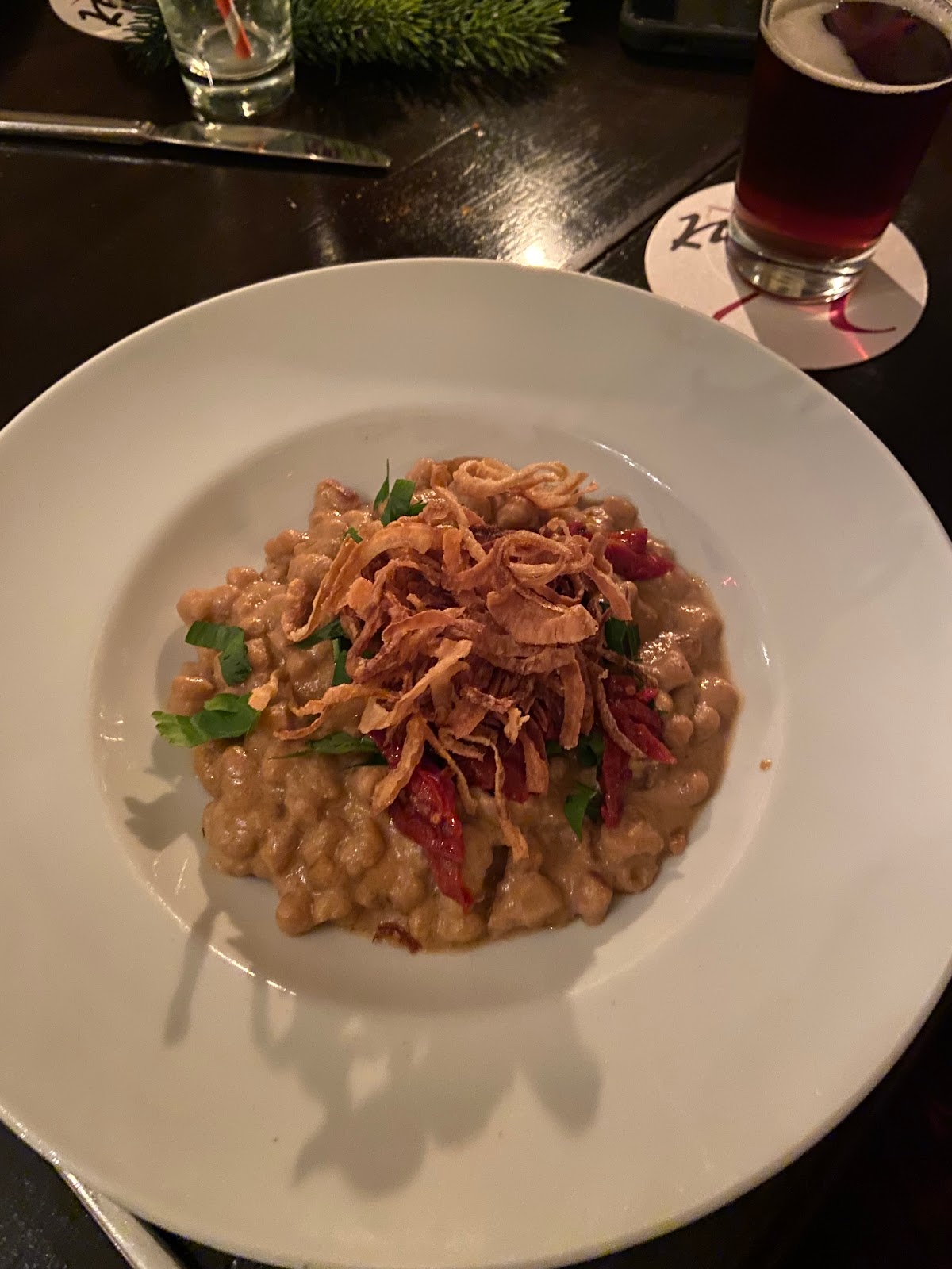 Vaust is a bit deep into West Berlin for most tourists, but you can easily plan a dinner there after a stop at Kaiser Wilhelm Memorial Church on the “far” side of the Tiergarten. It’s located on a pretty, quiet street where you can hear many birds singing while you eat outside. This was our “authentic German” vegan dinner plan and we are quite satisfied. The spaetzle was excellent and we enjoyed our starters as well. The chocolate cake for dessert was the perfect ending.